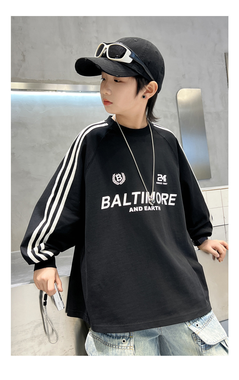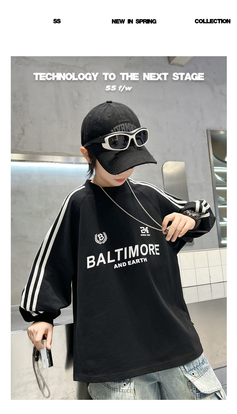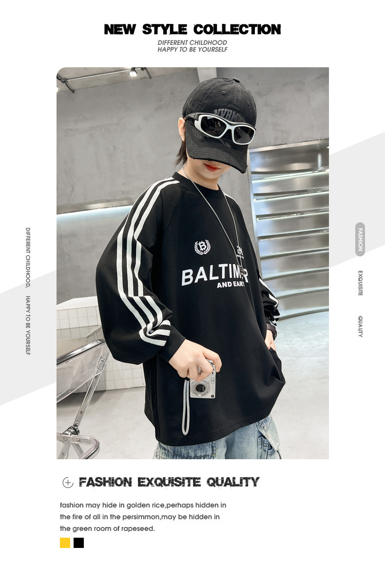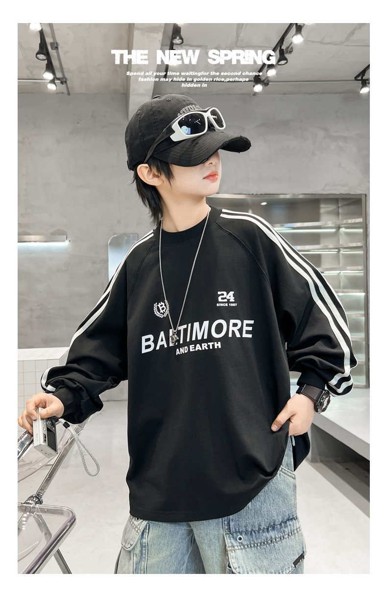 소년의 봄 긴 소매 스웨터 줄무늬 캐주얼 루즈 티셔츠 2025 소년을위한 새로운 봄 웨스턴 스타일 탑