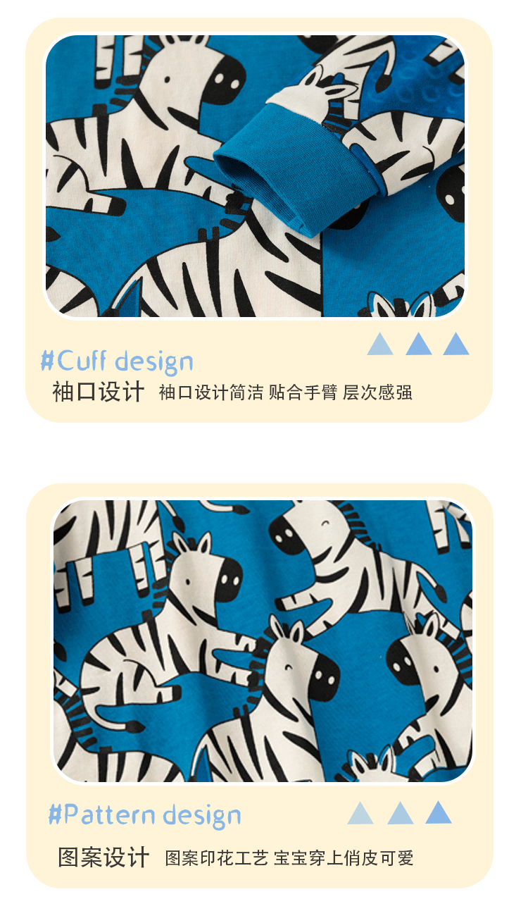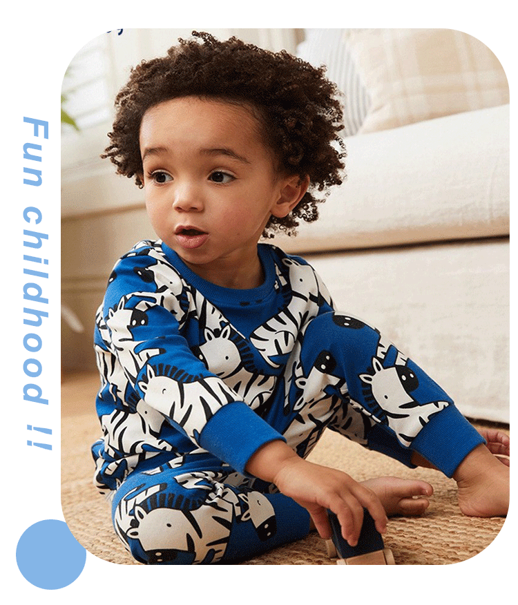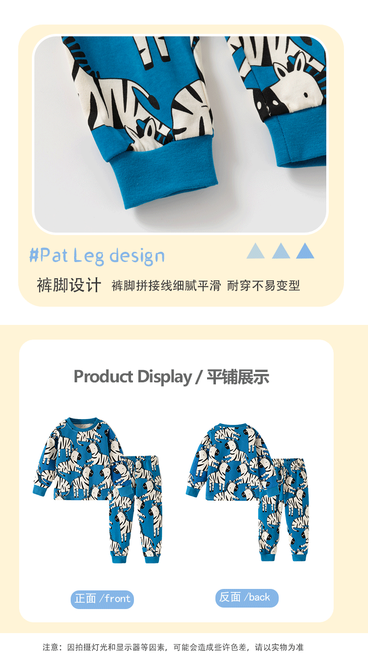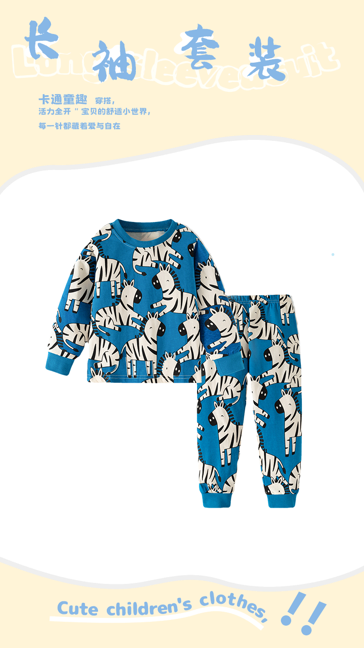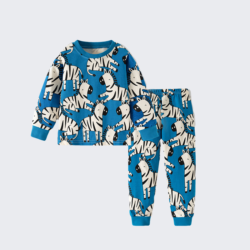 어린이 봄과 가을 남성 어린이 새로운 2-7 면화 세트 에어컨 의류 얼룩말 크루 넥 긴팔 어린이 홈 의류 투피스 세트