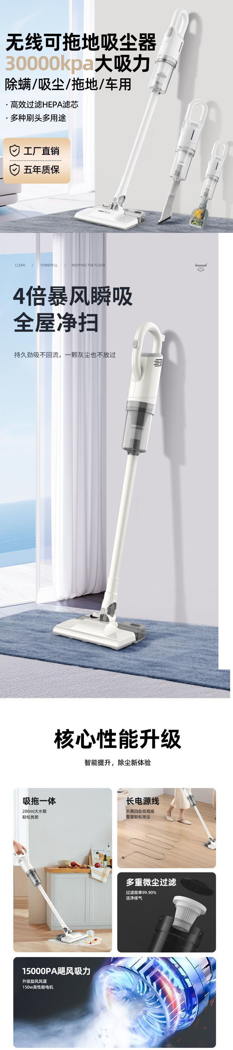 무선 진공 청소기 습식 걸레 올인원 가정용 음소거 강력한 고출력 진공 청소기 먼지 제거 및 진드기 제거 휴대용 사용하기 쉬운스토어 가기