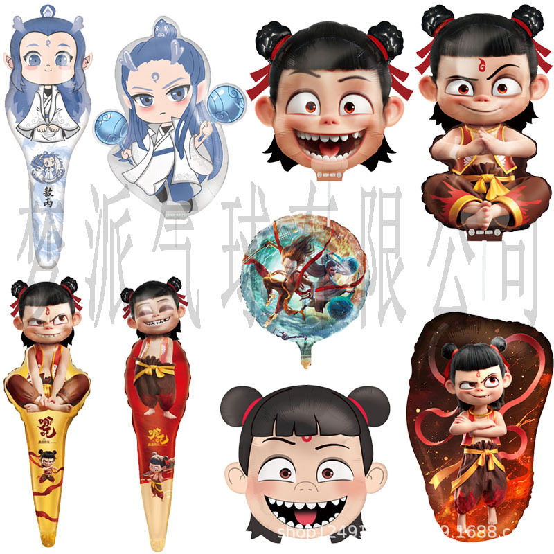 국경 간 새로운 Nezha Naohai 테마 모델링 알루미늄 풍선 Nezha 휴대용 스틱 클립 쇼핑몰 활동 장식 공