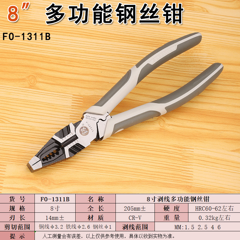 후쿠오카 FO-1311B 와이어 플라이어 8 인치 다기능 강철 와이어 스트리퍼 전기 기술자 호랑이 펜치 수동 하드웨어 도구