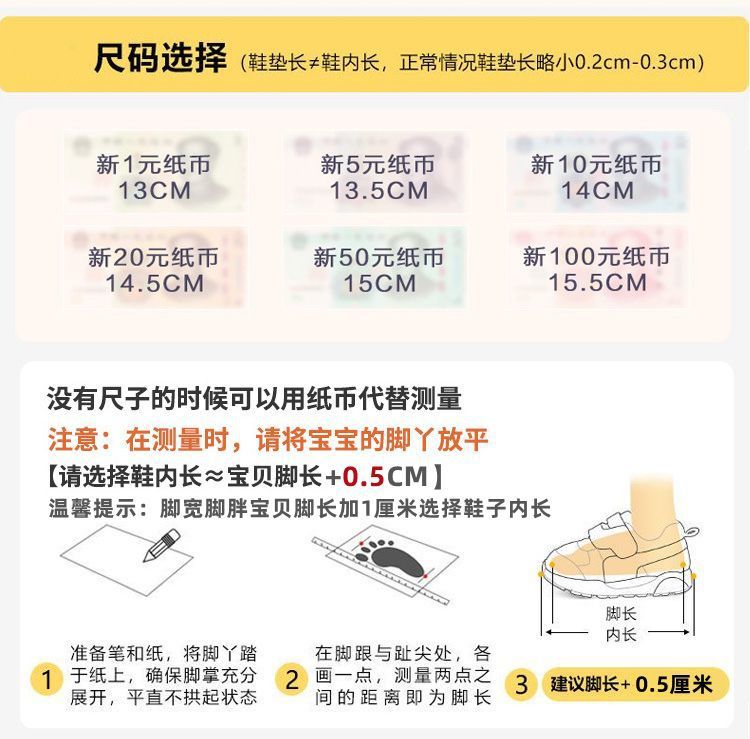 • 아기 발 길이 + 0.5cm 신발 안쪽 길이 선택