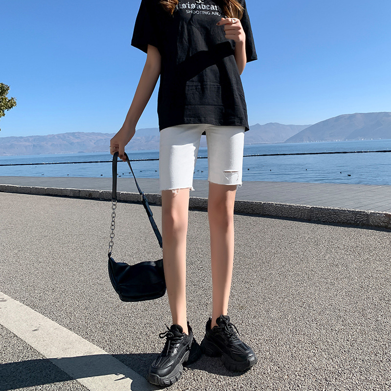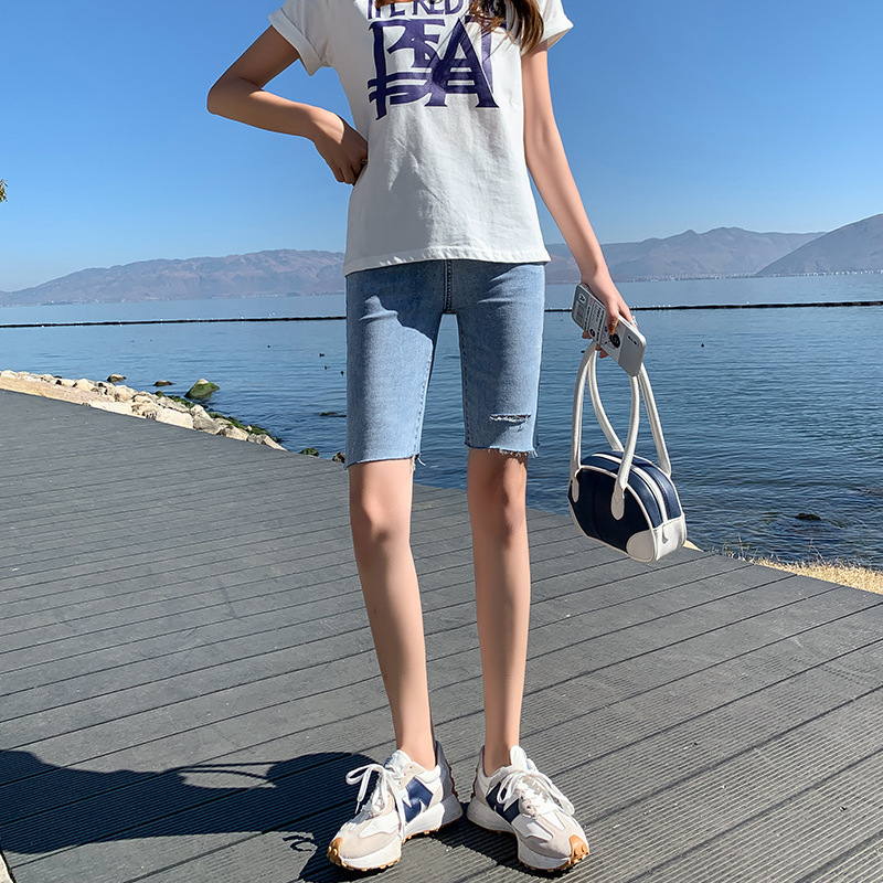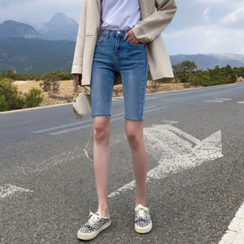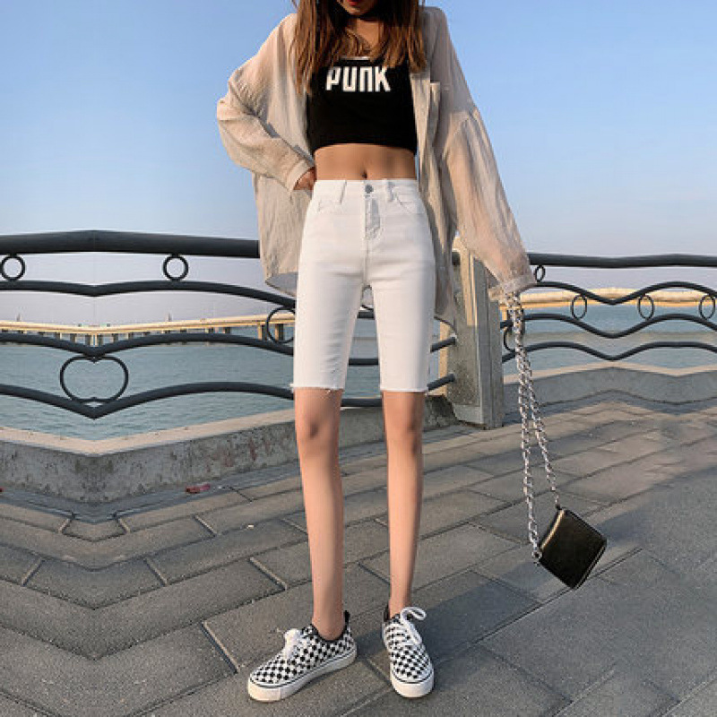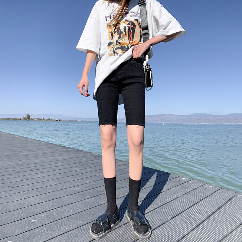 인터넷 유명 인사 5 점 청바지 반바지 여성 여름 얇은 높은 허리 탄성 슬림 핏 블랙 스트레이트 팬츠스토어 가기