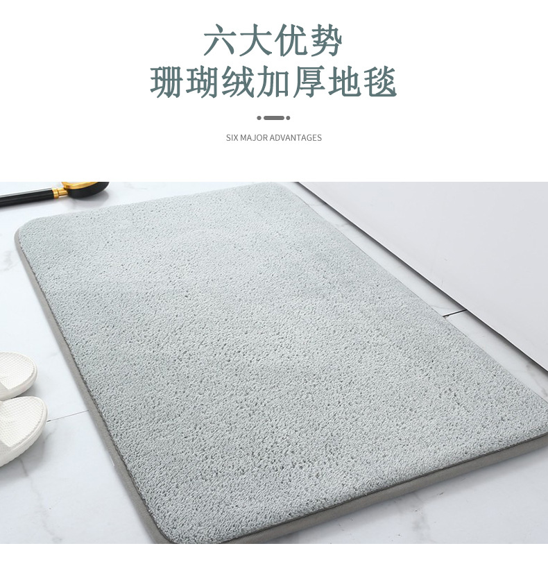 국경 간 테무 산호 양털 바닥 매트 홈 솔리드 컬러 흡수 미끄럼 방지 매트 두꺼운 발 매트 공장 스트레이트 헤어