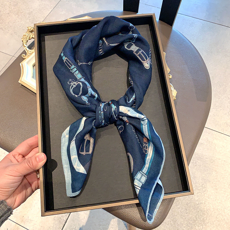 일본과 한국의 고급 틈새 인쇄 스퀘어 스카프 디자이너 성격 우아한 우아한 양면 컬러 실크 스카프 스카프스토어 가기