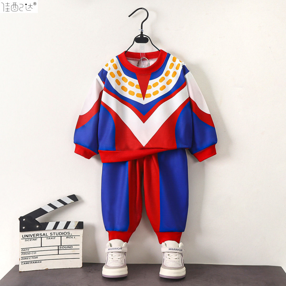 소년 소녀를위한 새로운 어린이 땀 세트 봄과 가을 긴 소매 스포츠 2 종 세트 중소 및 대형 아동복스토어 가기