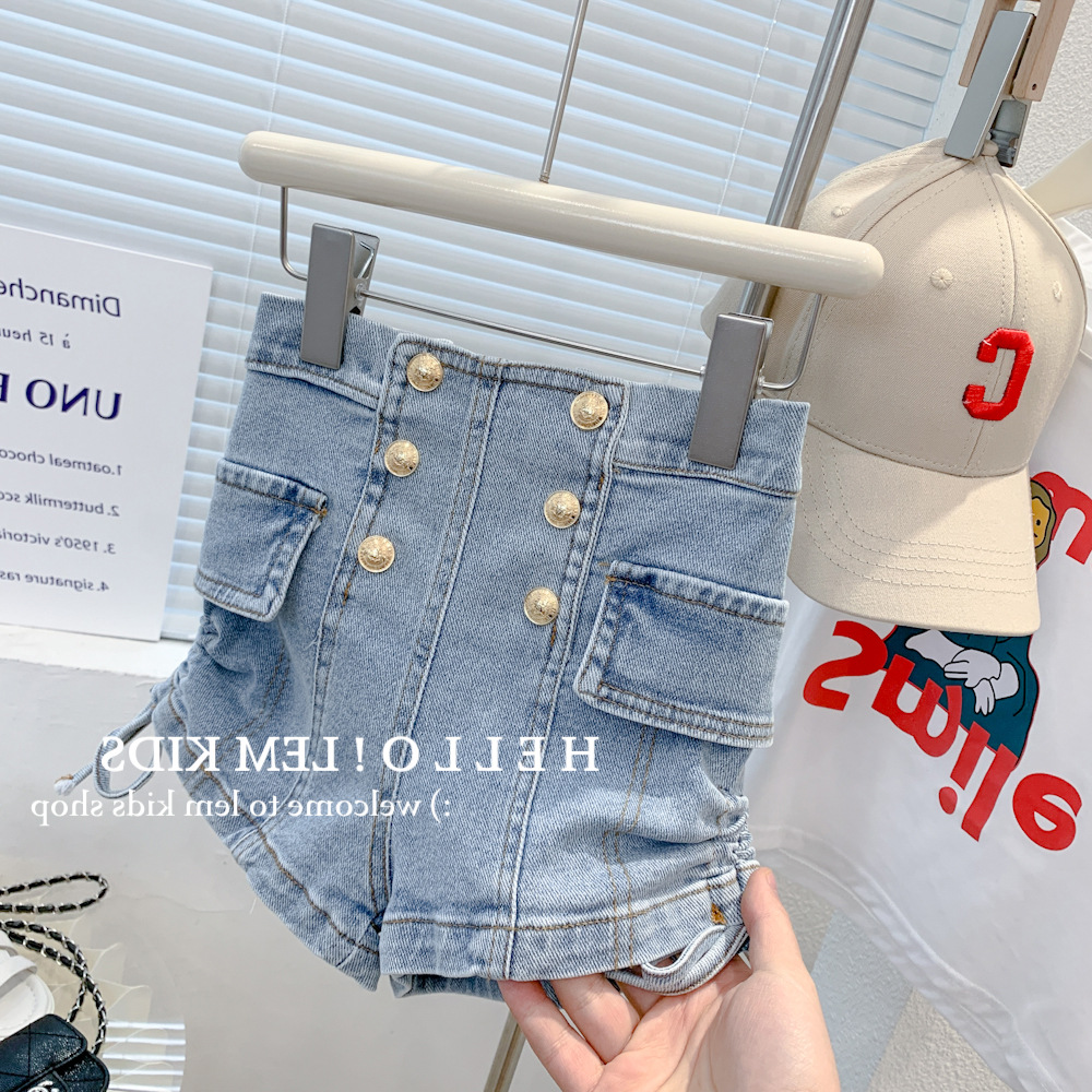 소녀 데님 반바지 2025 여름 새로운 스타일 서양식 드로스트링 얇은 아기 유행 어린이 핫 바지 크로스 보더 헤어스토어 가기