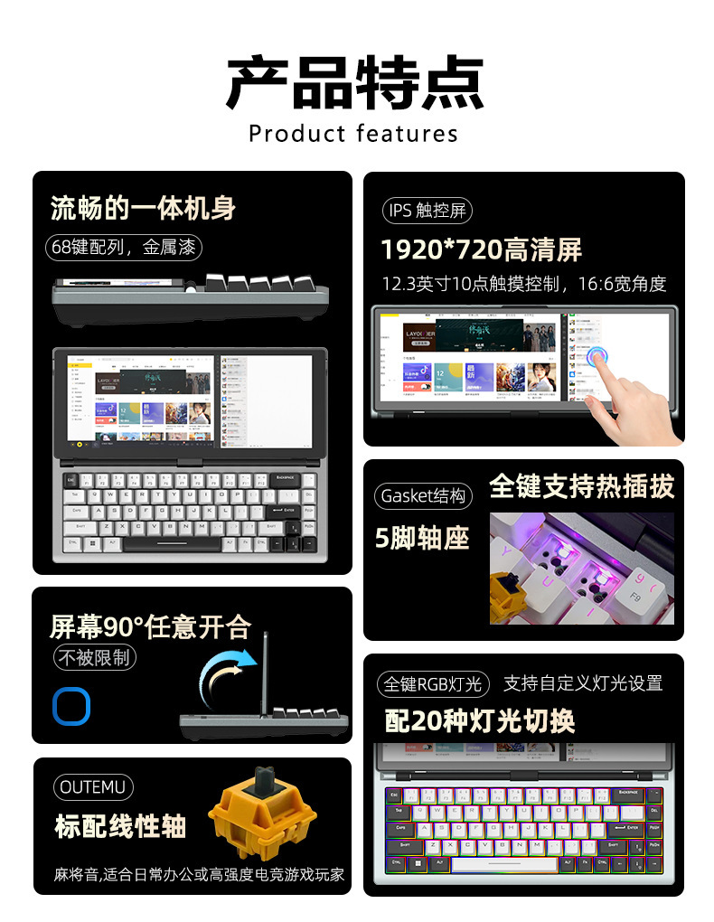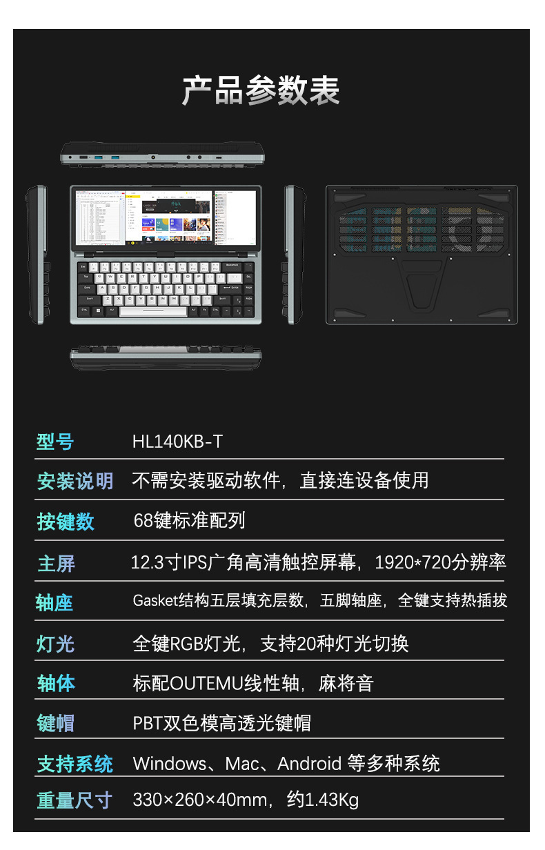 신제품 제조업체는 보조 화면 12.3 인치 HD 터치 스크린을 갖춘 68 키 기계 키보드를 직접 공급합니다.