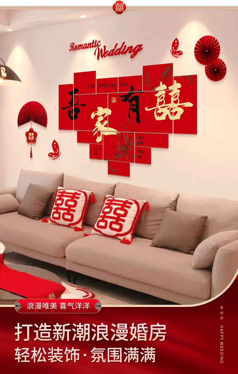 웨딩 약혼 해피 캐릭터 스플 라이스 보드 배경 벽 스티커 안뜰 웨딩 용품 Daquan 웨딩 룸 장식 세트