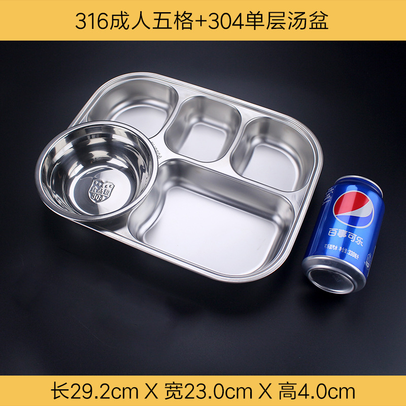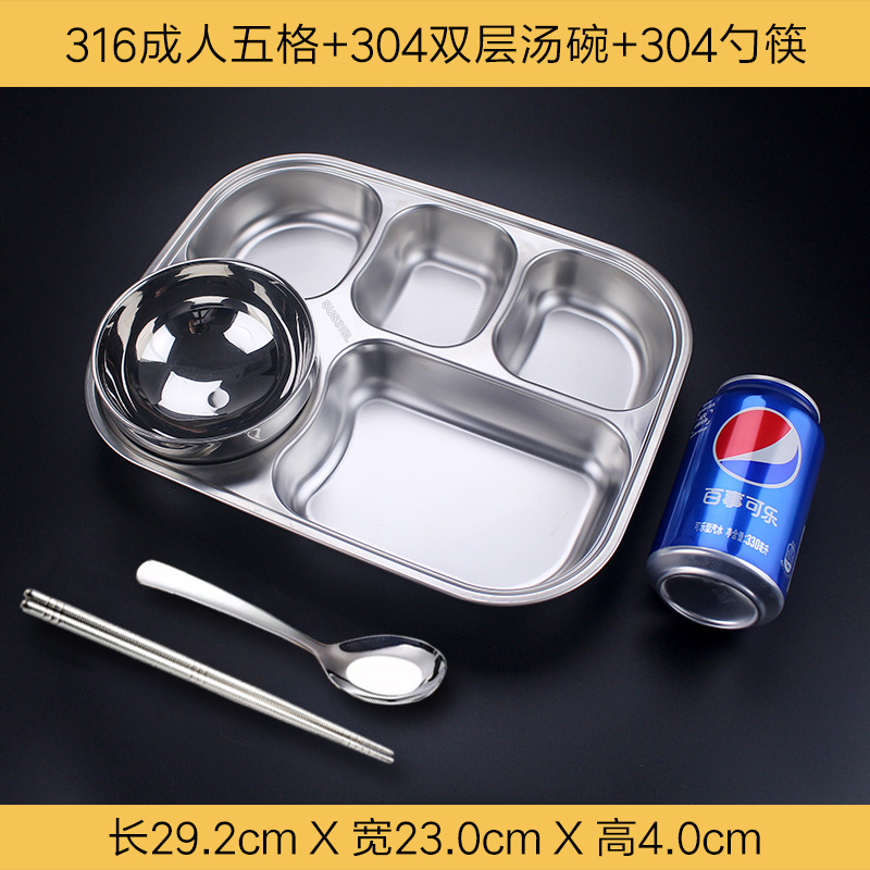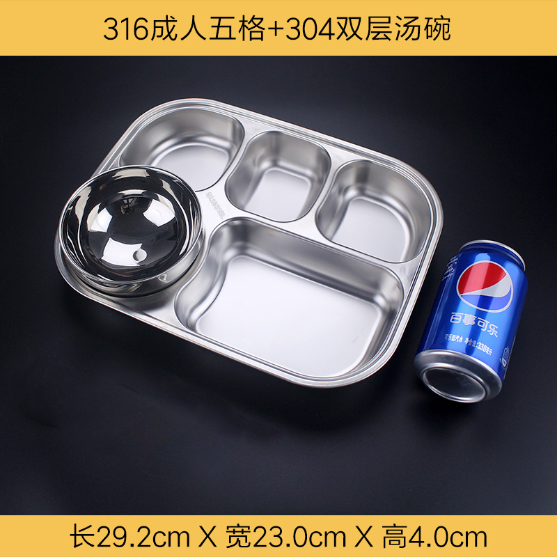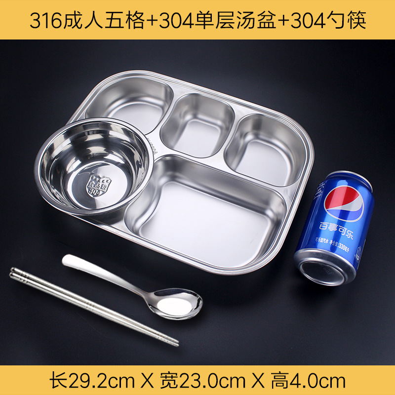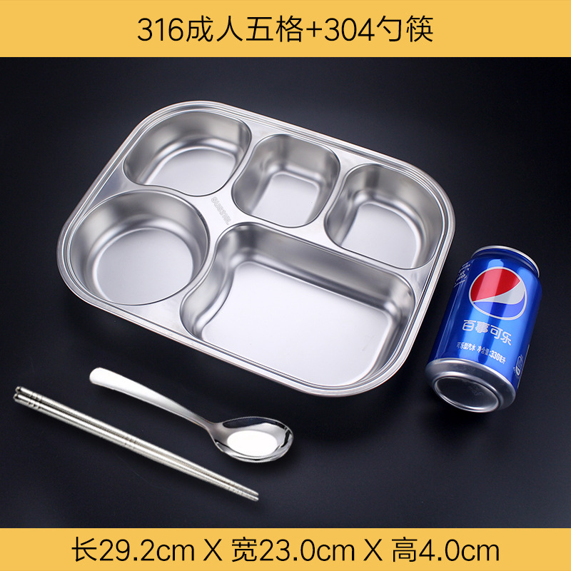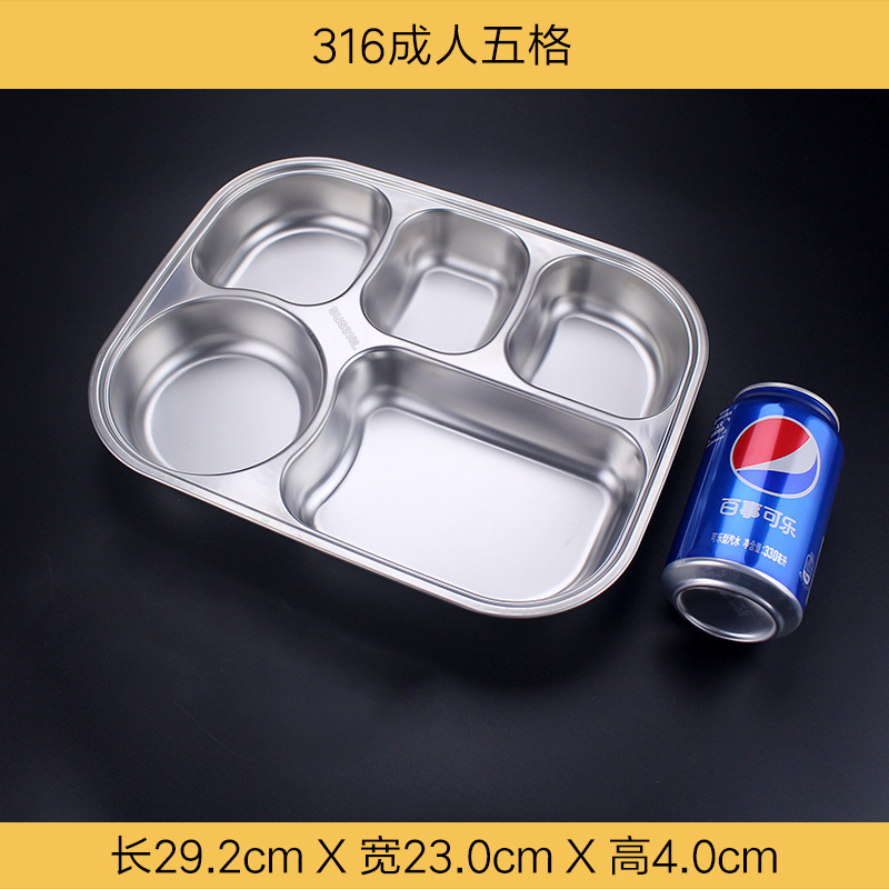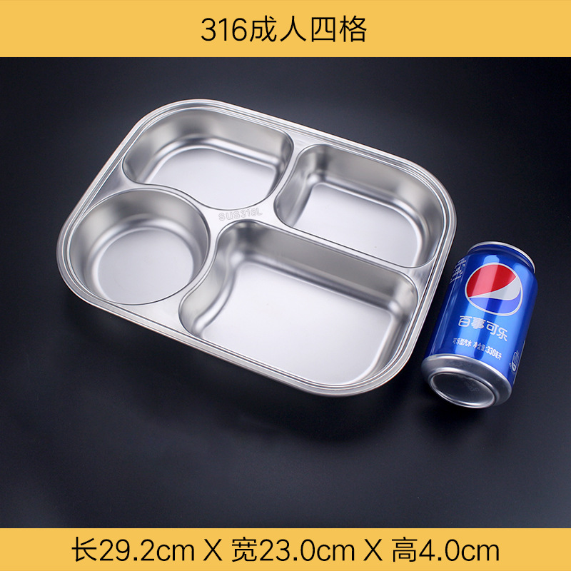 식품 학년 316 스테인레스 스틸 분할 디너 플레이트 성인 직원 매점 4 패드 5 패드 성인 대용량