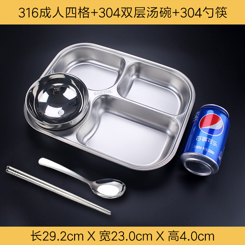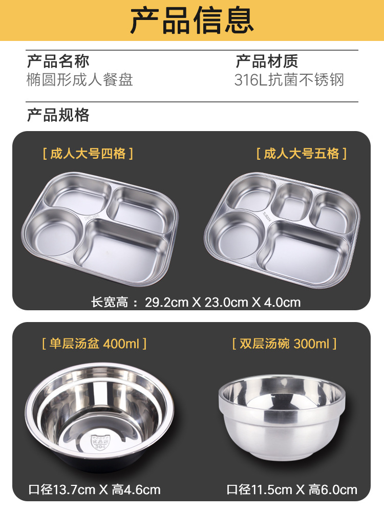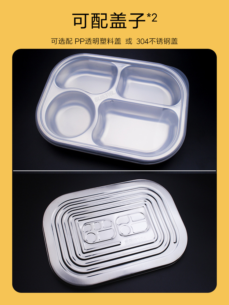 식품 학년 316 스테인레스 스틸 분할 디너 플레이트 성인 직원 매점 4 패드 5 패드 성인 대용량스토어 가기
