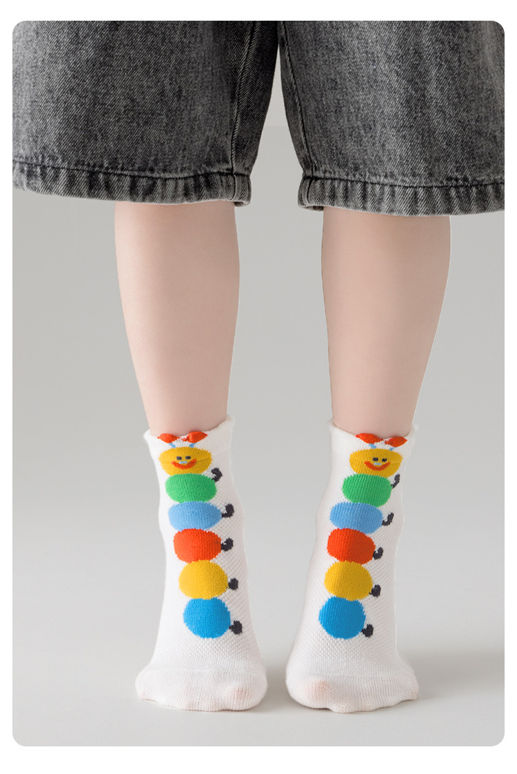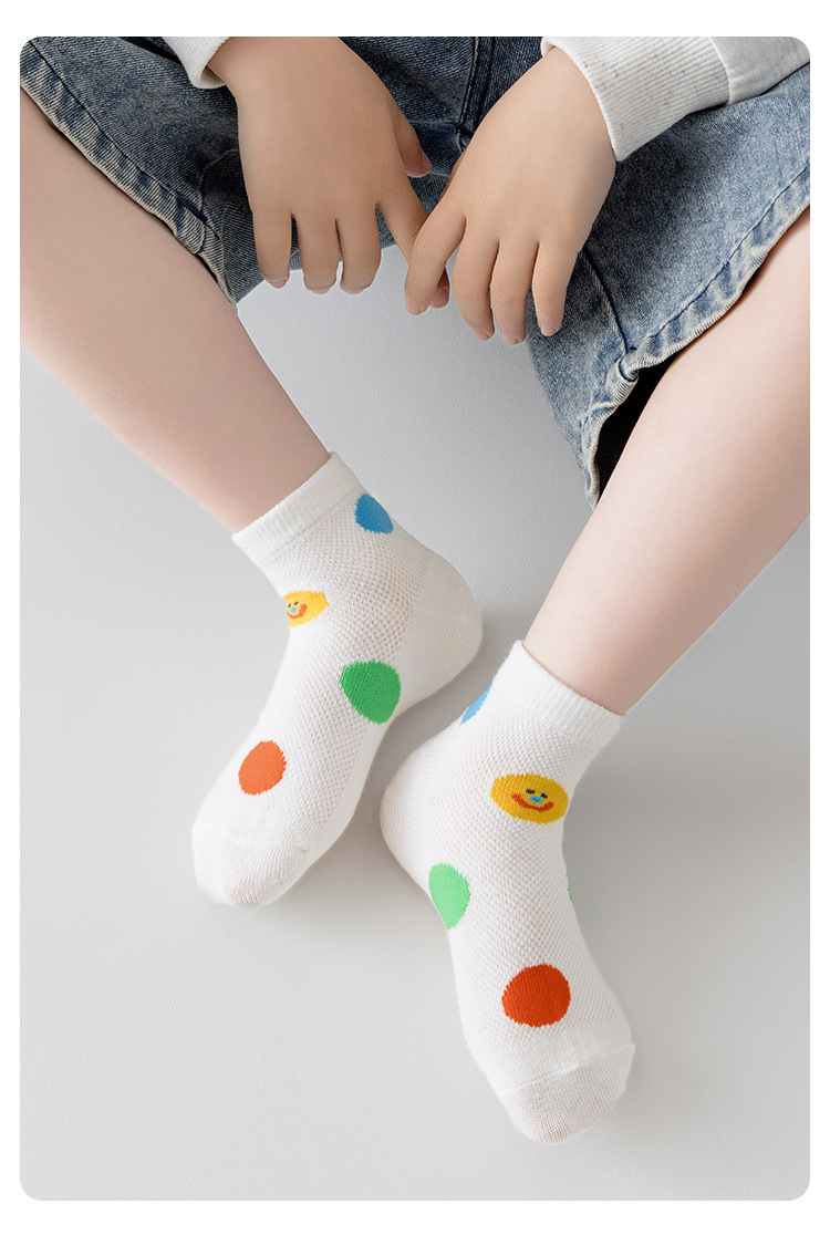 어린이 양말 여름 얇은 소년과 소녀 만화 면 양말 봄과 여름 메쉬 귀여운 웃는 양말 통기성 도매