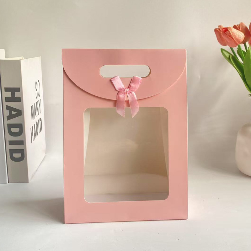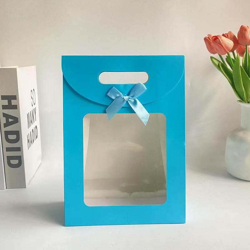 재고 두꺼운 창 플랩 활 종이 가방 핑크 파란색 선물 가방 구멍 파는 벨크로 가방
