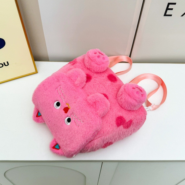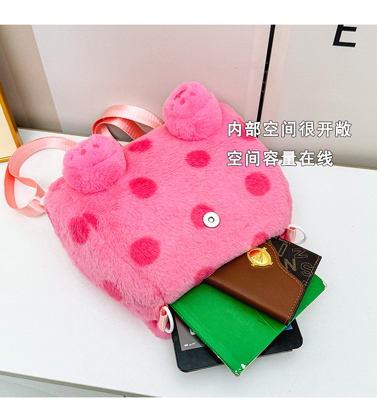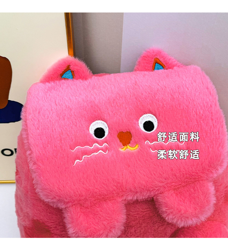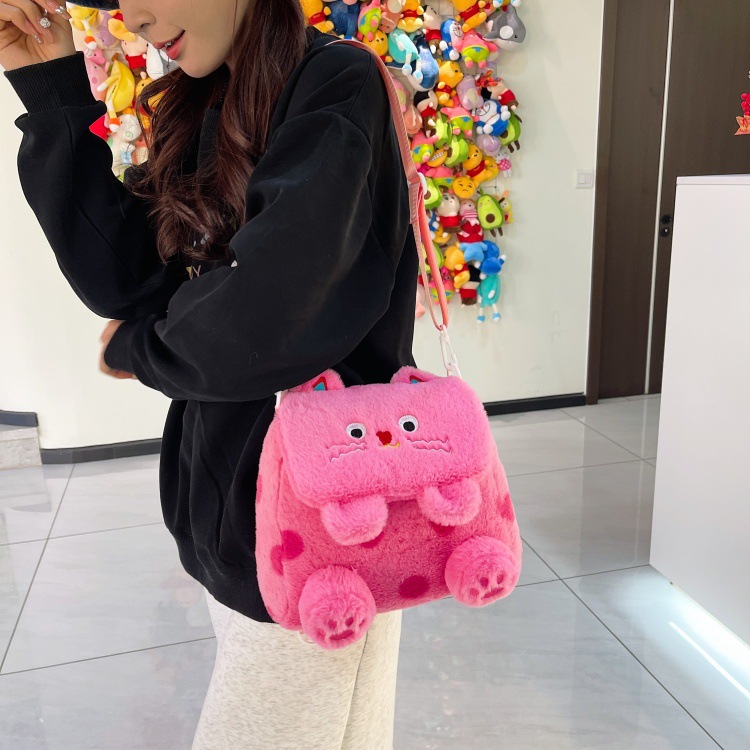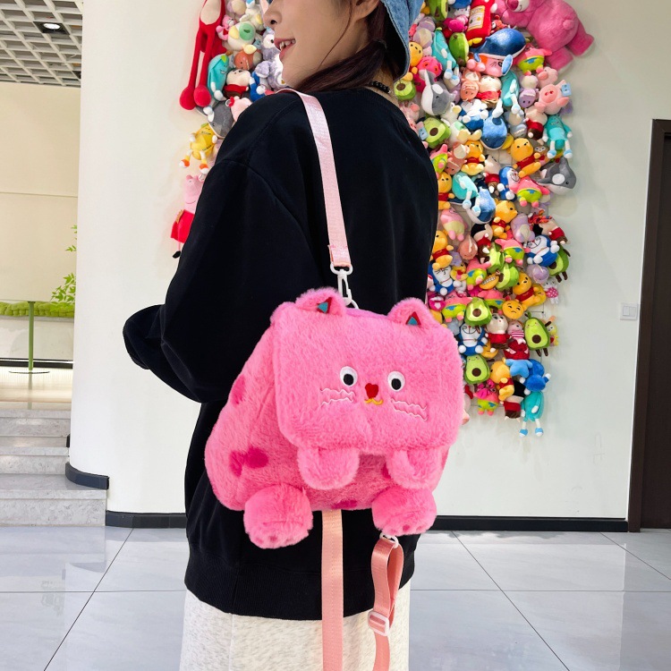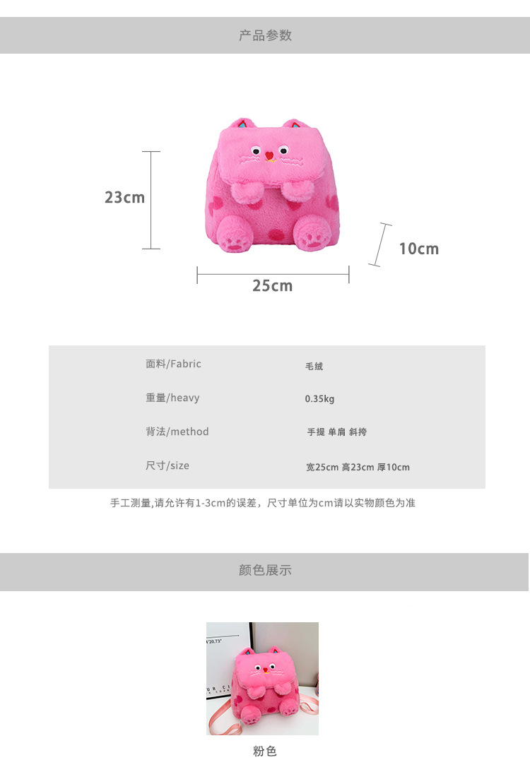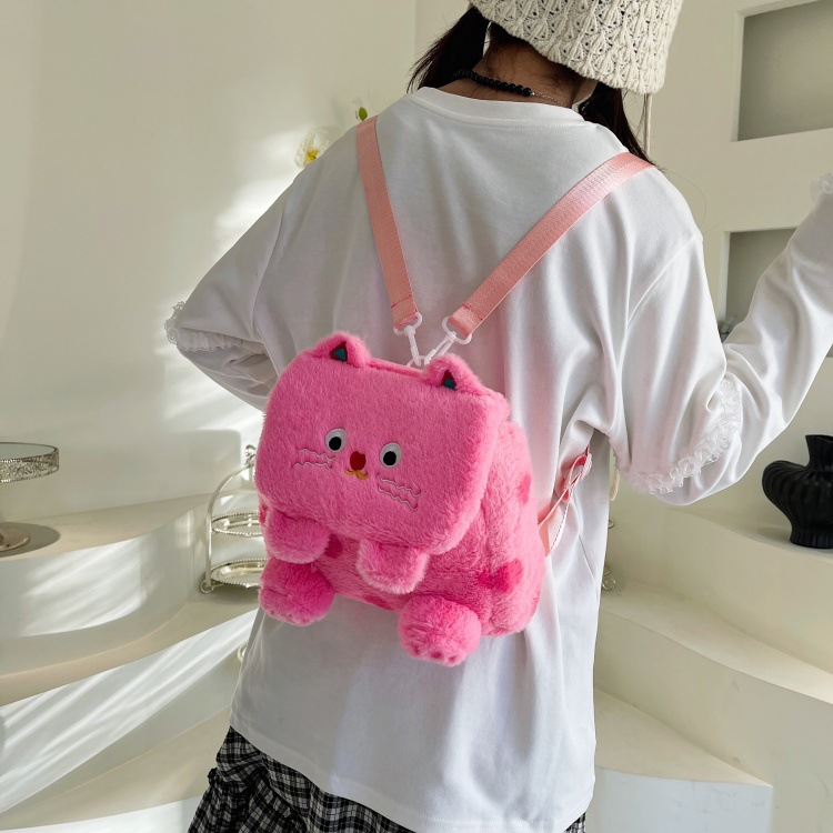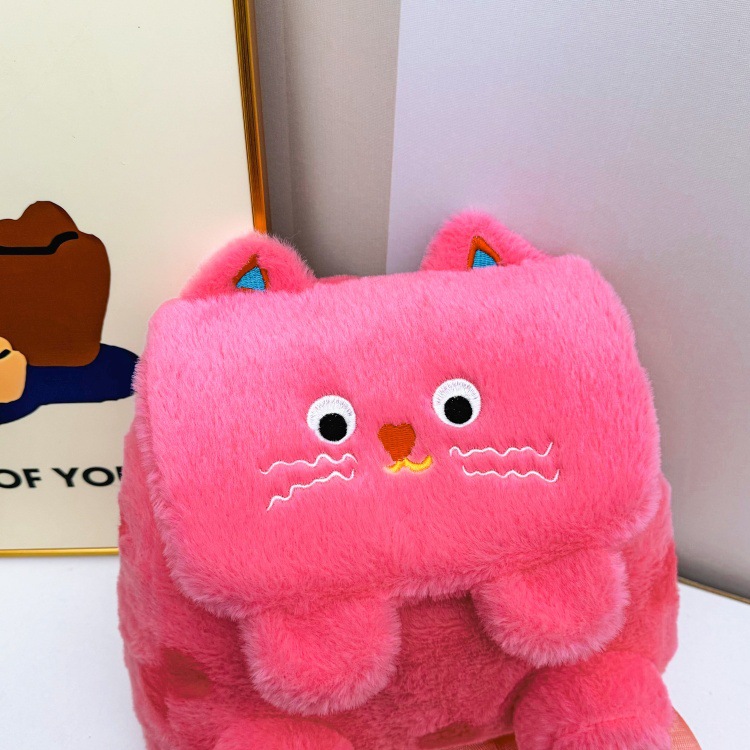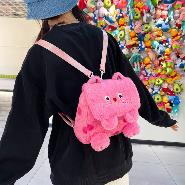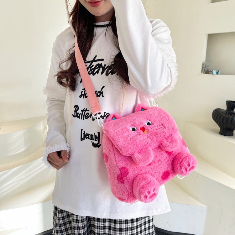 자수 일본식 여성용 크로스백 핑크색 귀여운 어린이 물방울 무늬 플러시 백팩 만화 고양이 인형 가방
