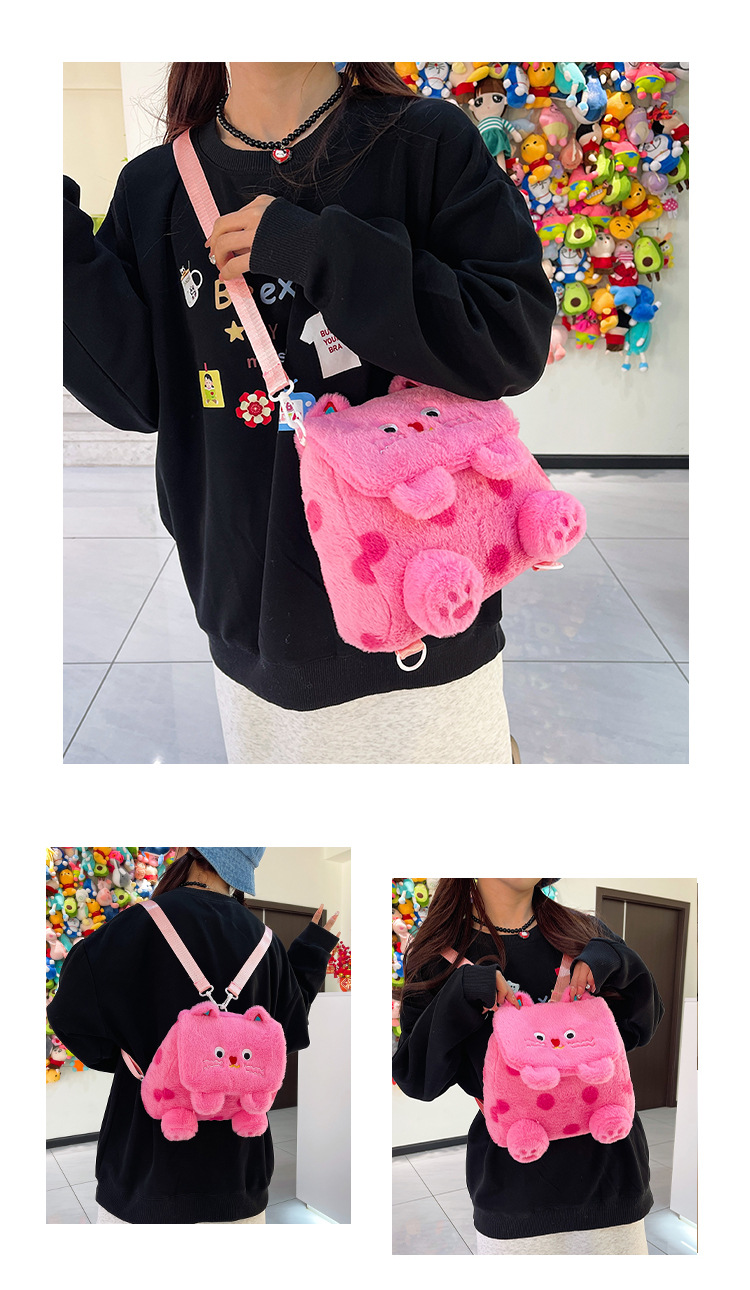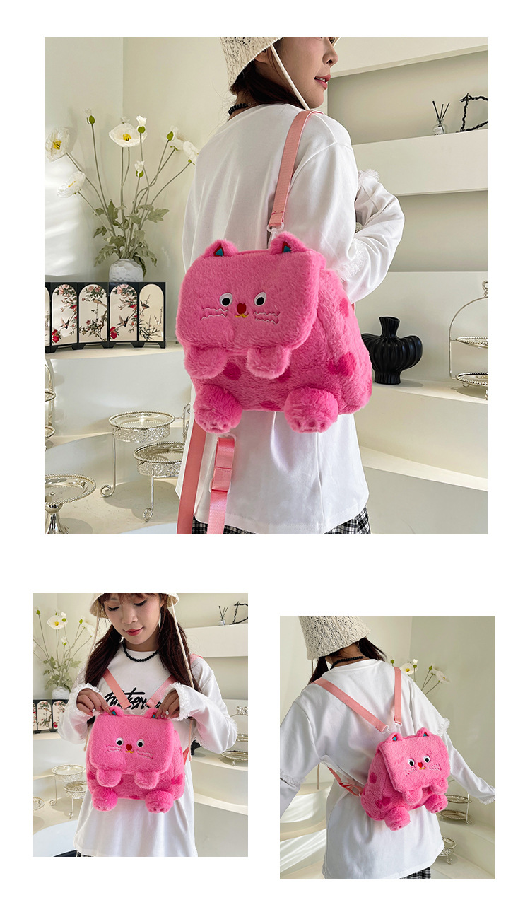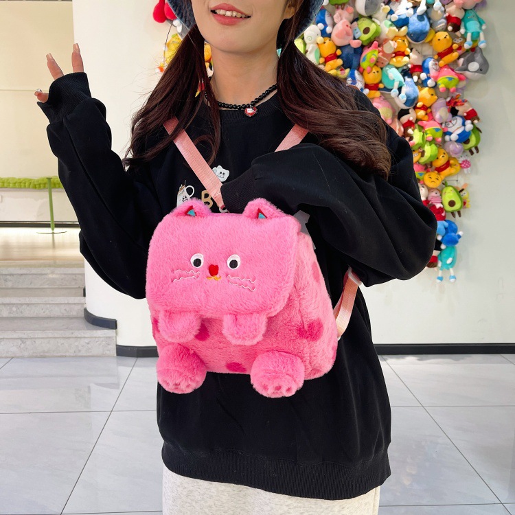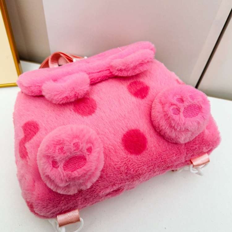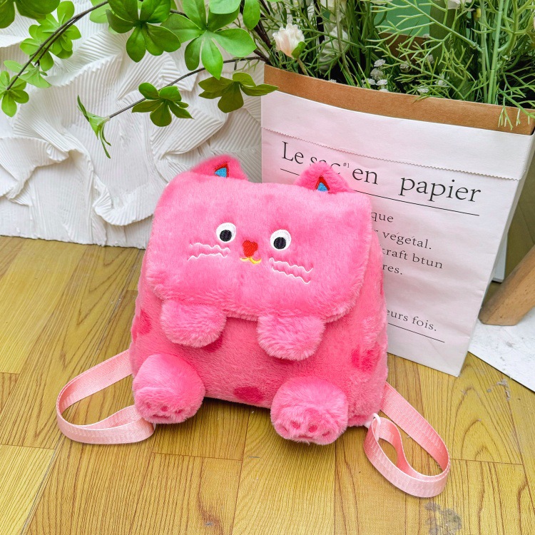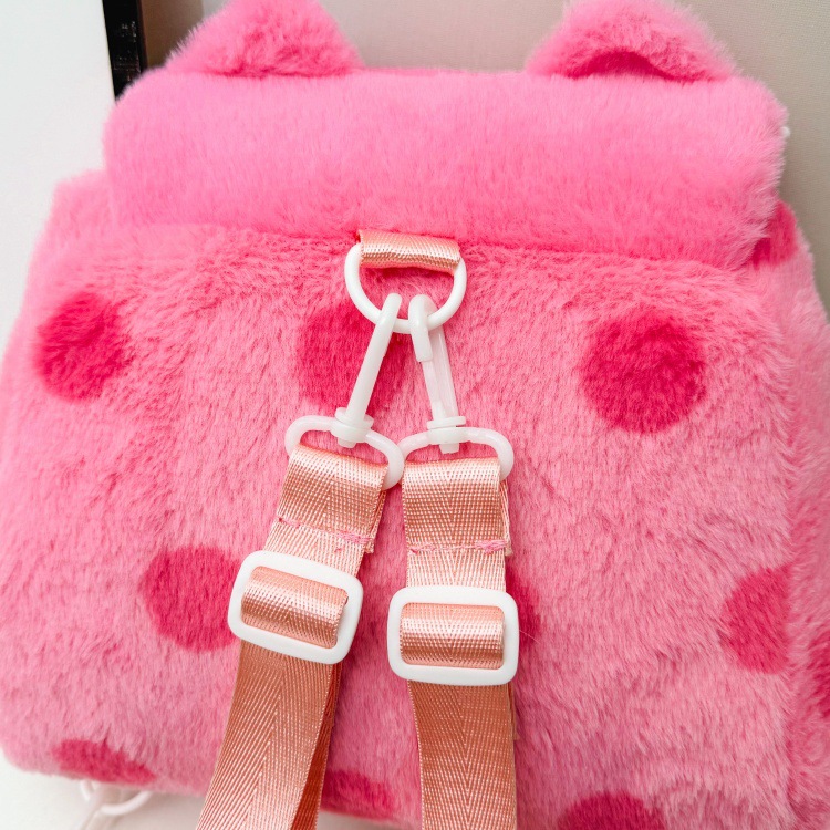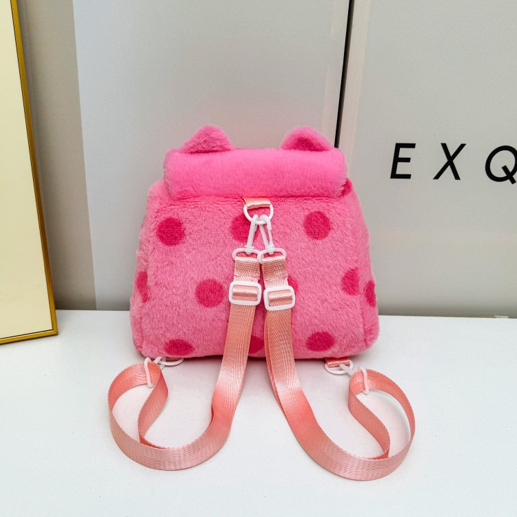 자수 일본식 여성용 크로스백 핑크색 귀여운 어린이 물방울 무늬 플러시 백팩 만화 고양이 인형 가방스토어 가기