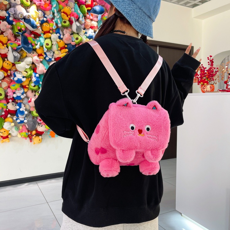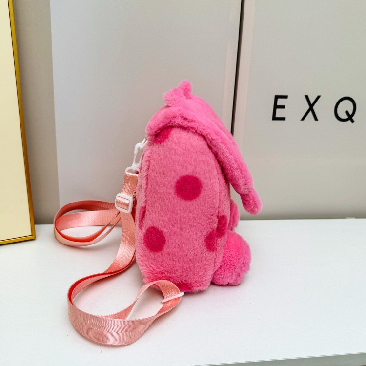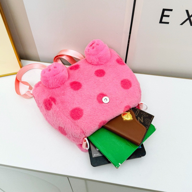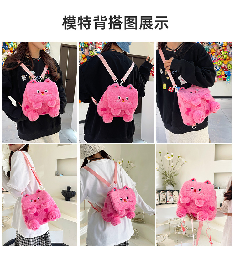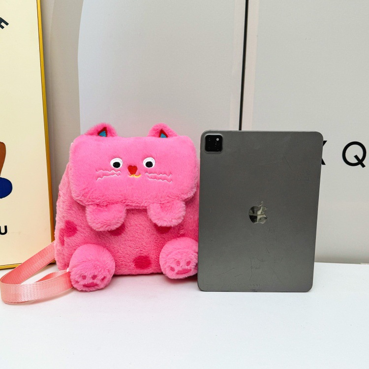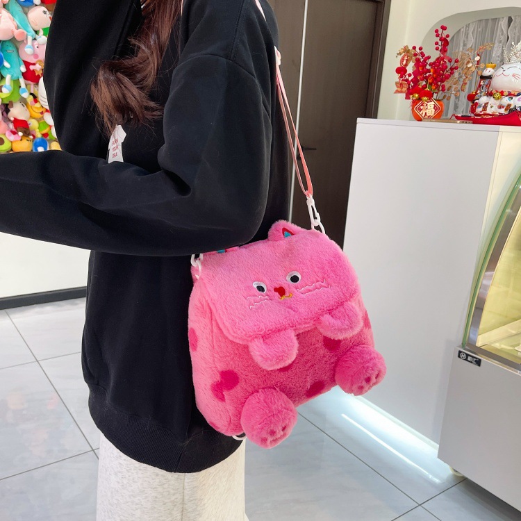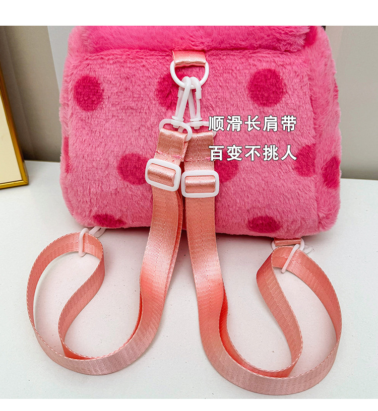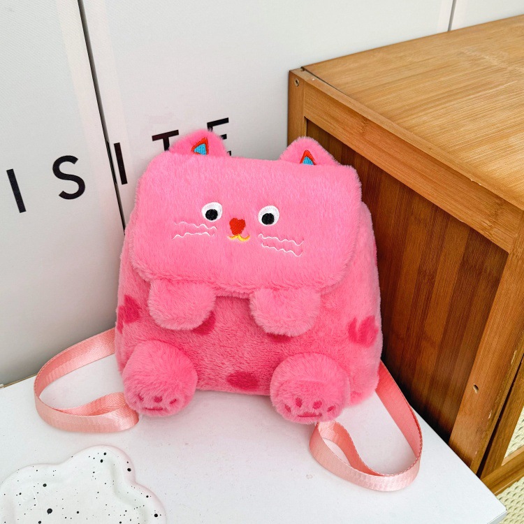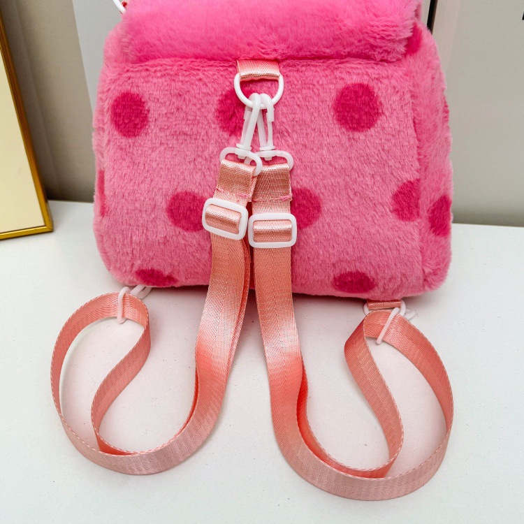 자수 일본식 여성용 크로스백 핑크색 귀여운 어린이 물방울 무늬 플러시 백팩 만화 고양이 인형 가방스토어 가기