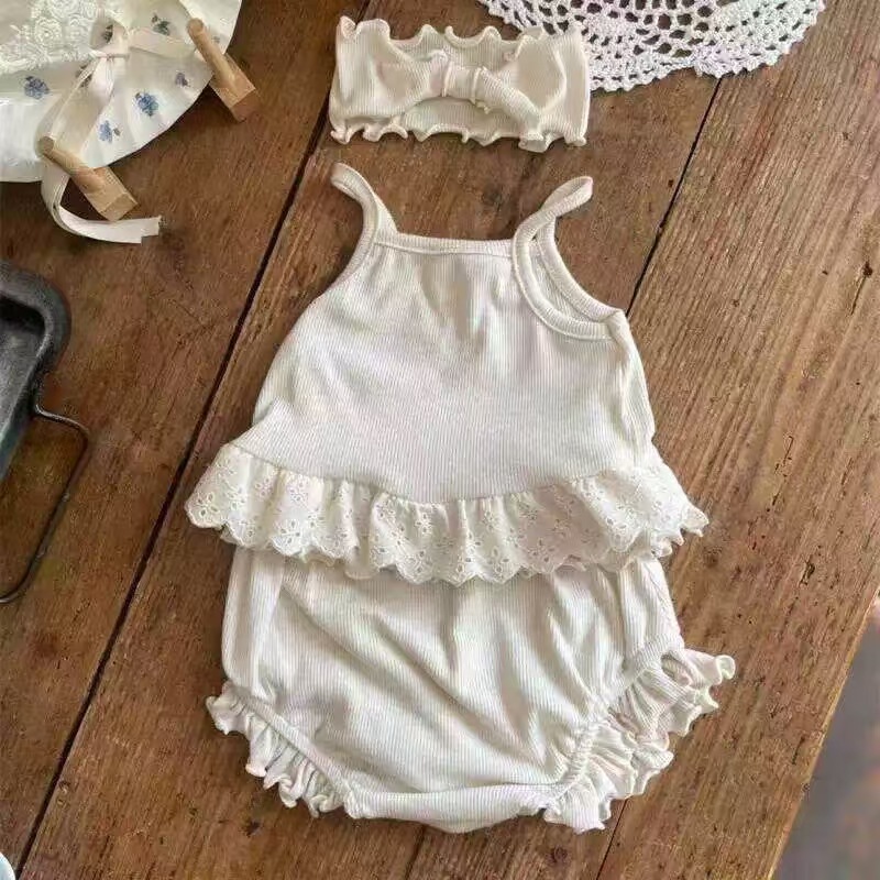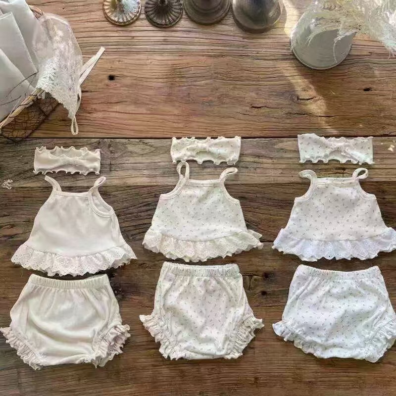 Ins Korean Style 여성의 보물 여름 부드러운 얇은 꽃 슬링 세트 올 매치 레이스 바느질 공주 조끼 투피스 세트스토어 가기