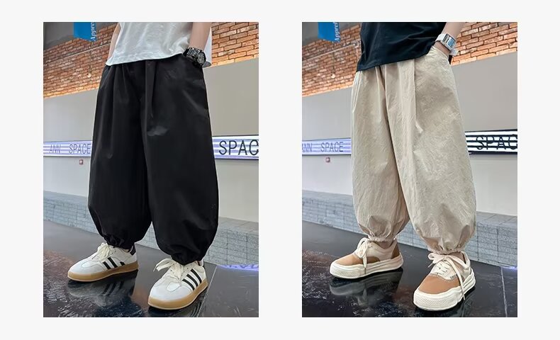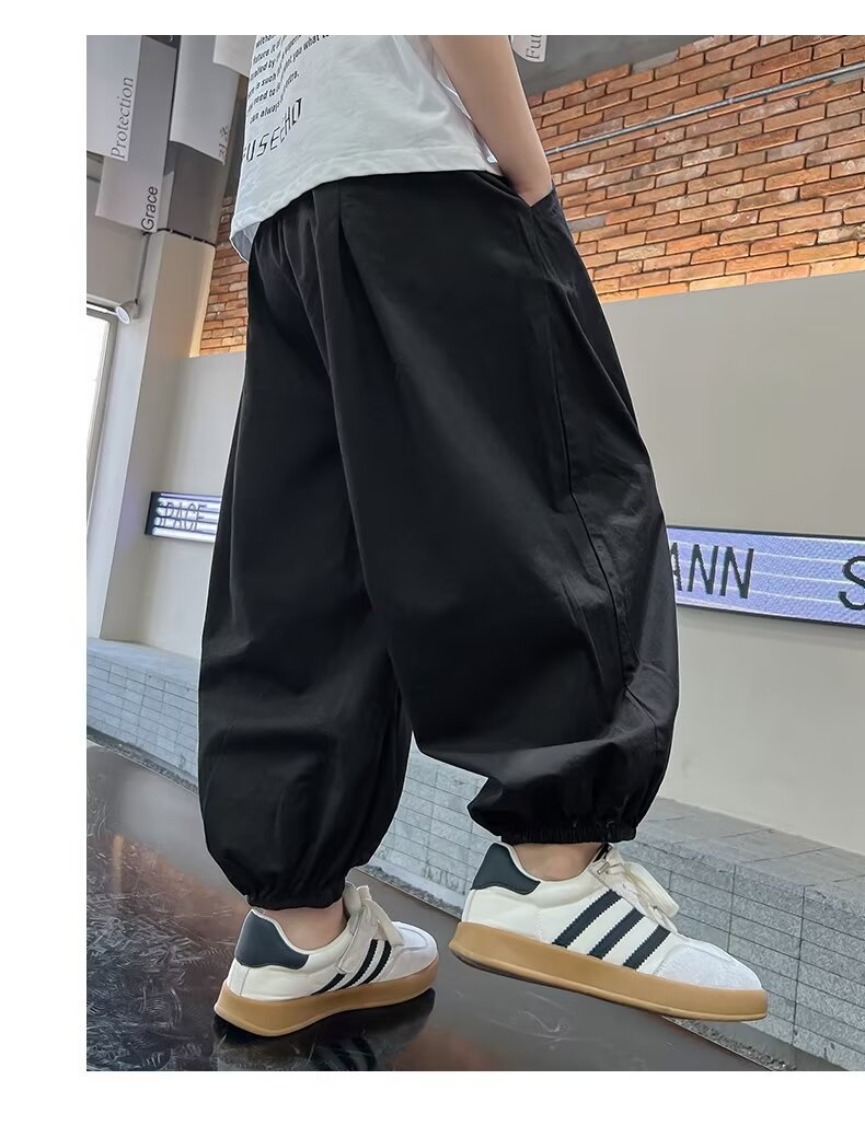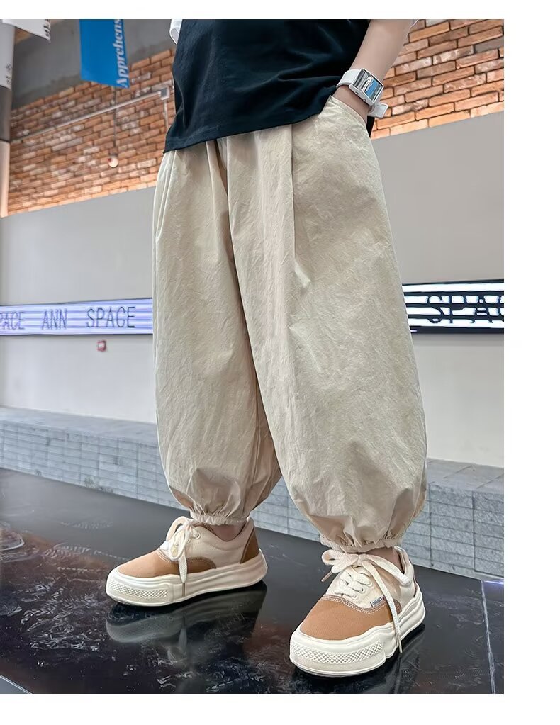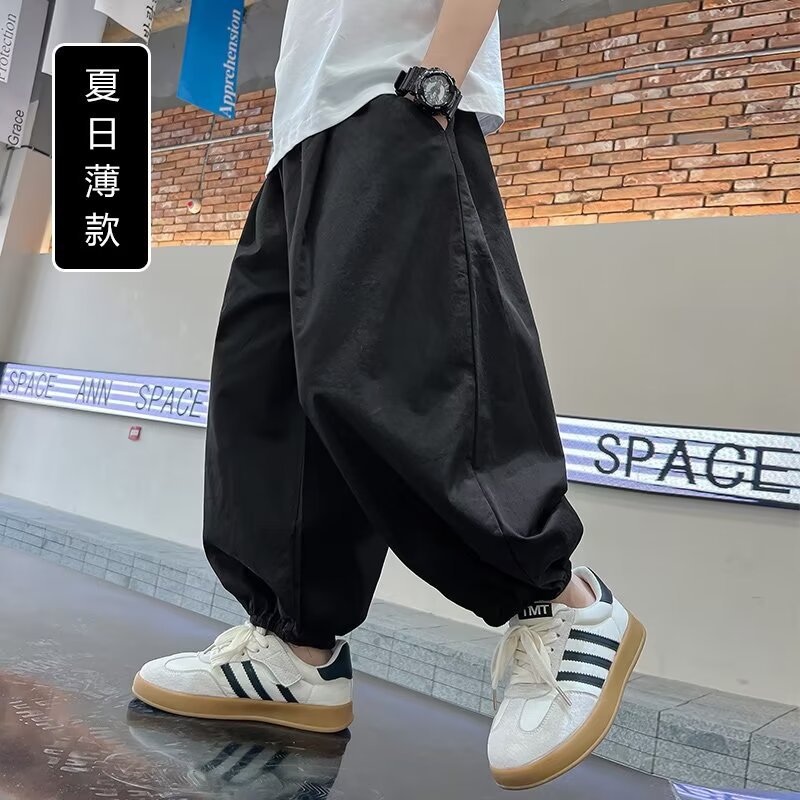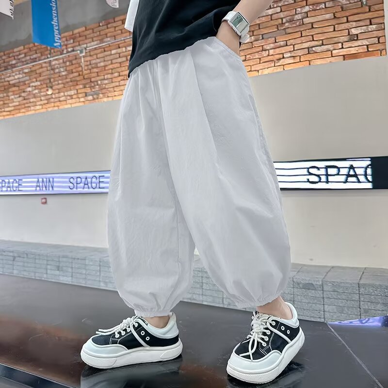 소년 빅 키즈 여름 얇은 어린이 간단한 캐주얼 바지 올매치 랜턴 안티 모기 바지 빅 키즈 발목 길이 바지