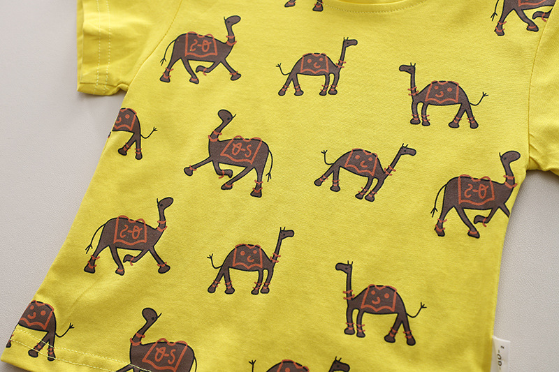 소년 전체 인쇄 만화 둥근 목 짧은 소매 세트 여름 새로운 아기 캐주얼 반바지 스타일 투피스 세트