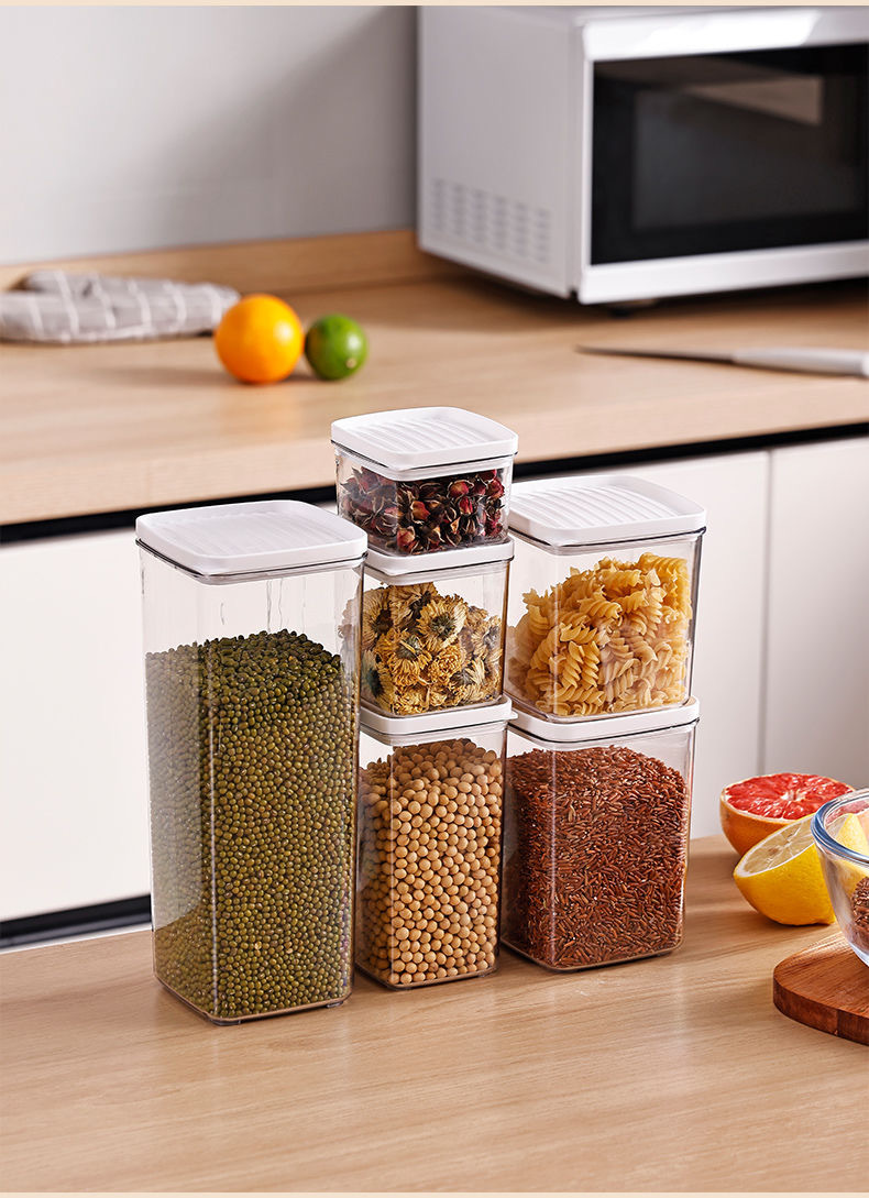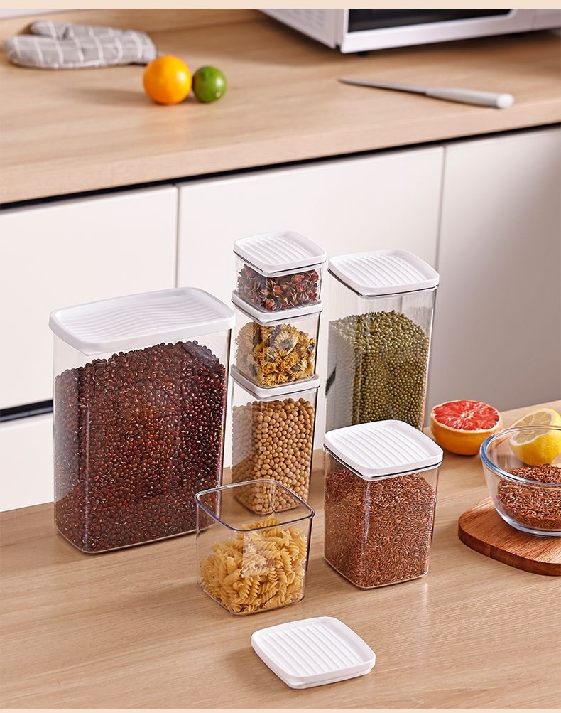 사각 식품 등급 플라스틱 밀봉 된 항아리 쌓을 수있는 가정용 굵은 곡물 저장 항아리 냉장고 건조 제품 보관 보관 상자스토어 가기