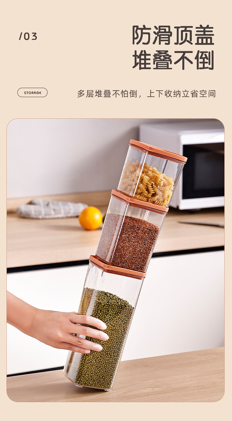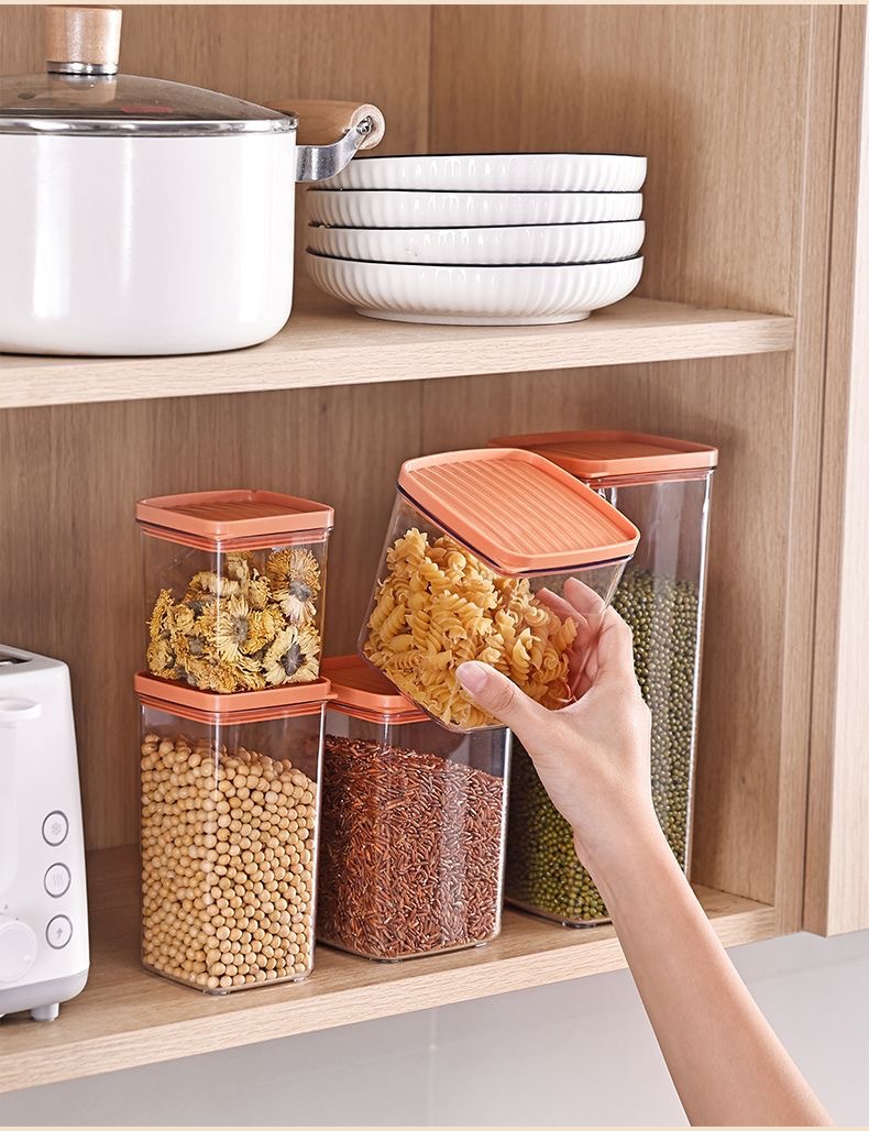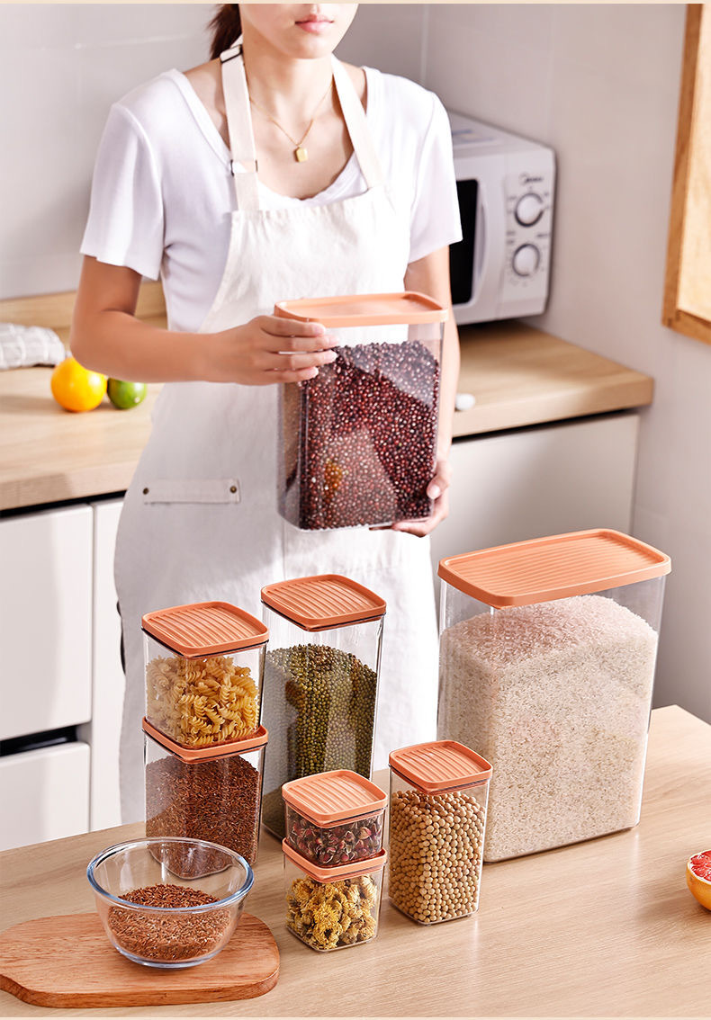 사각 식품 등급 플라스틱 밀봉 된 항아리 쌓을 수있는 가정용 굵은 곡물 저장 항아리 냉장고 건조 제품 보관 보관 상자
