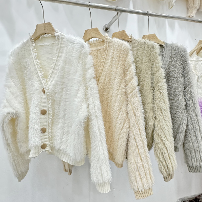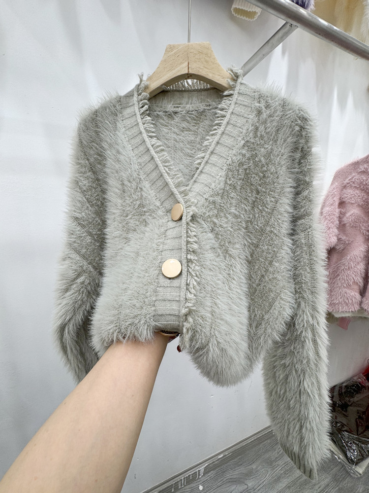 A6C 밍크 벨벳 패션 짧은 느슨한 올 매치 게으른 니트 카디건 가을과 겨울 새로운 부드러운 밀랍 외국 스타일 스웨터스토어 가기