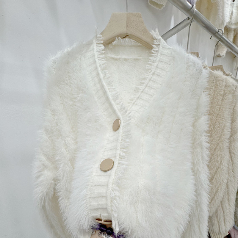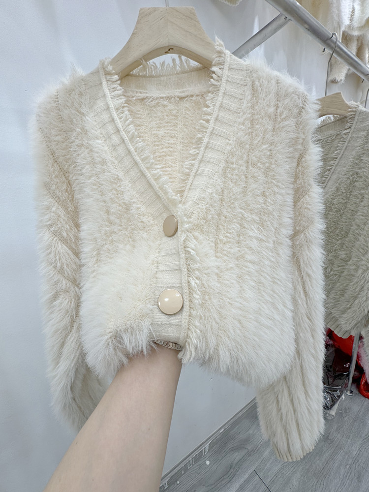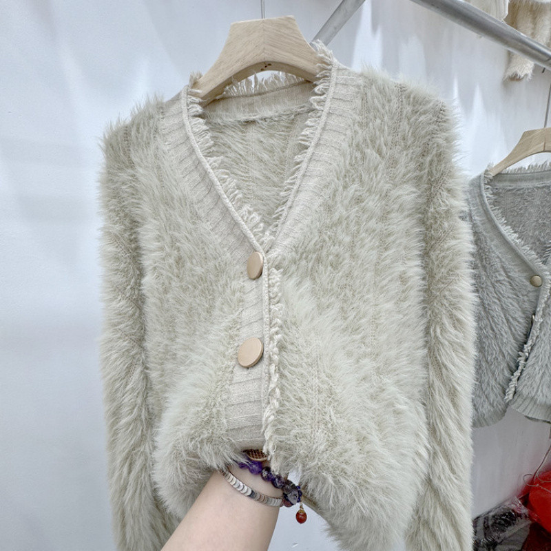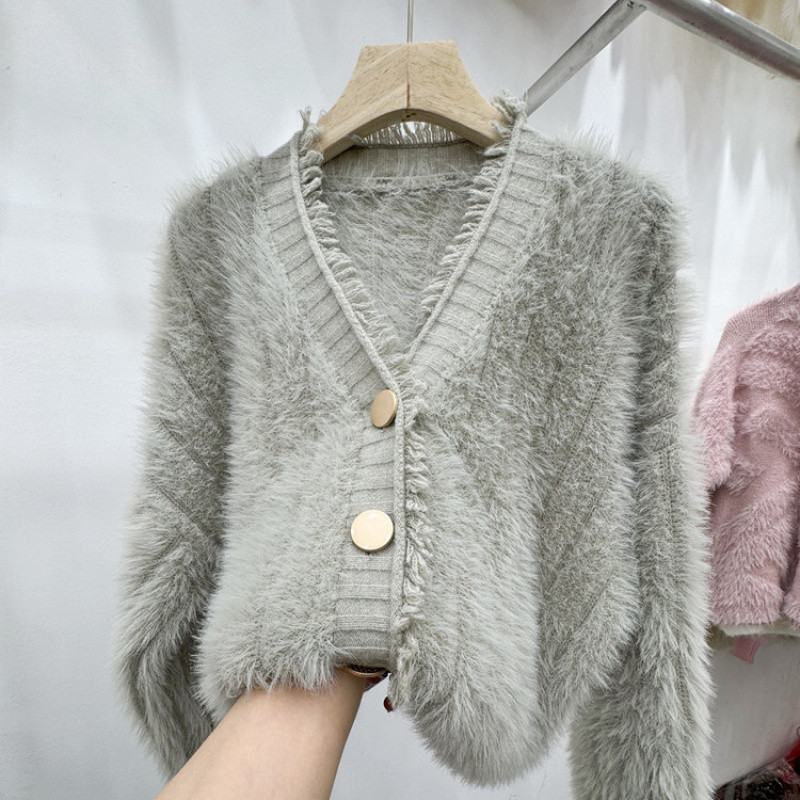 A6C 밍크 벨벳 패션 짧은 느슨한 올 매치 게으른 니트 카디건 가을과 겨울 새로운 부드러운 밀랍 외국 스타일 스웨터