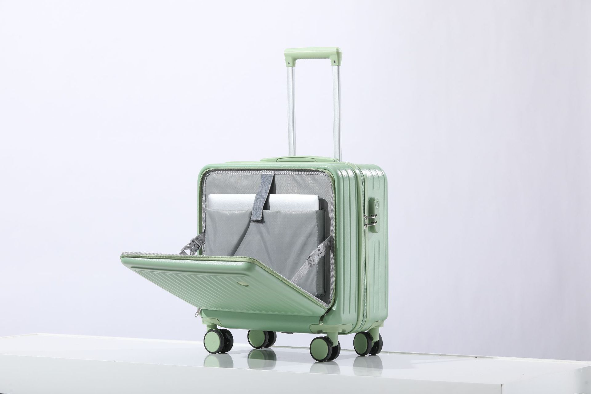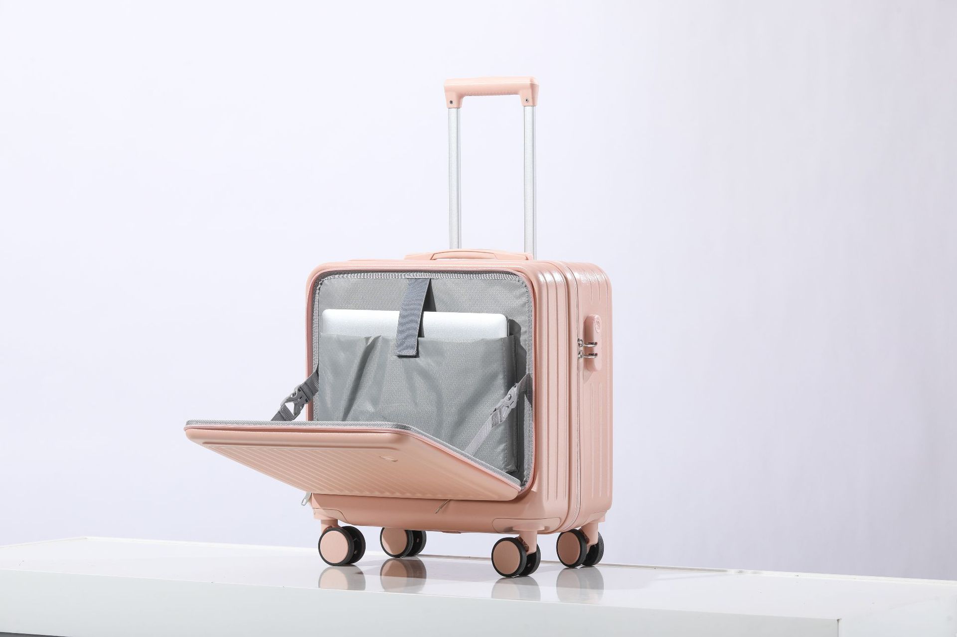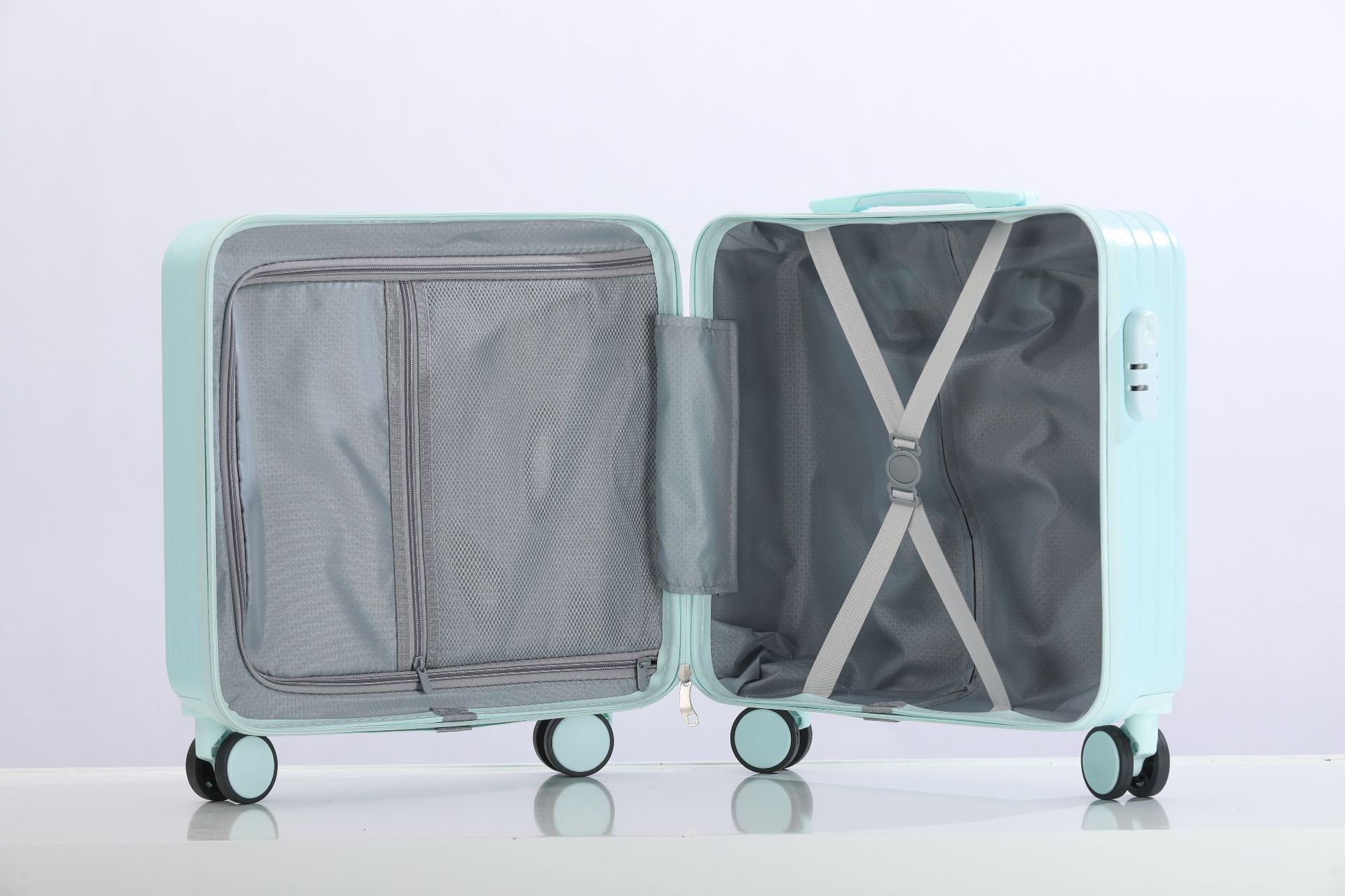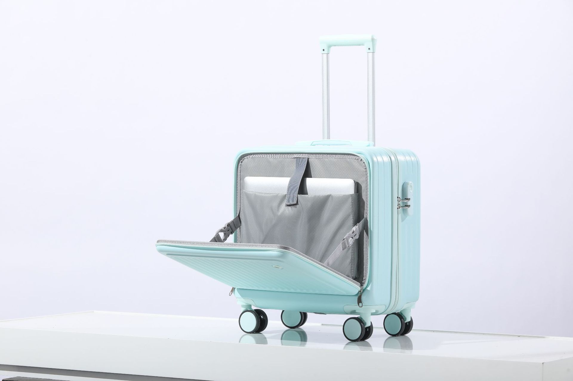 전면 개방 18 인치 다기능 수하물 트롤리 케이스 여성 스몰 사이즈 미니 탑승 상자 소형 비밀번호 가방