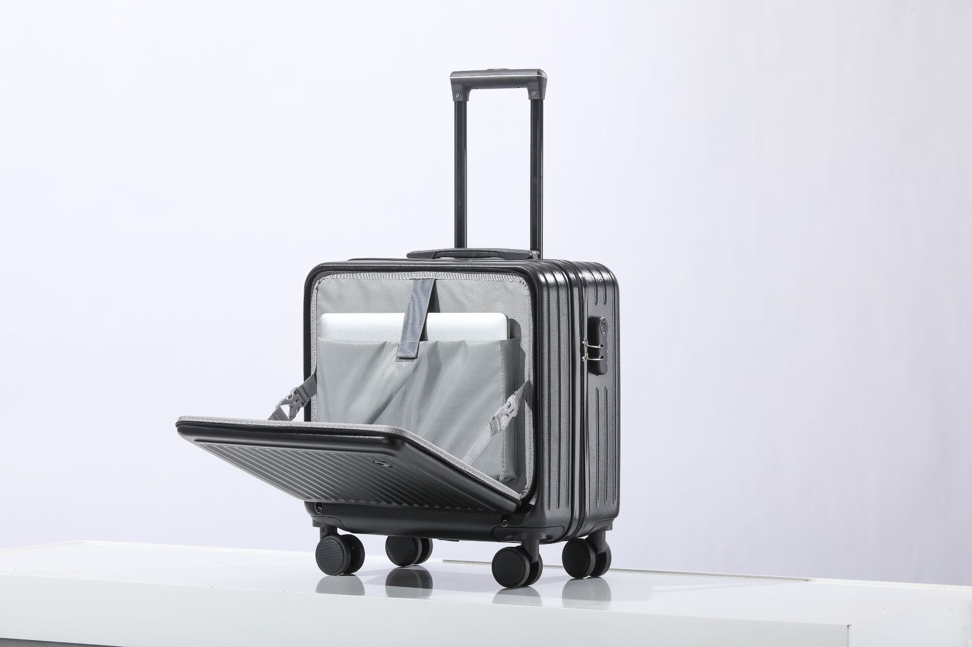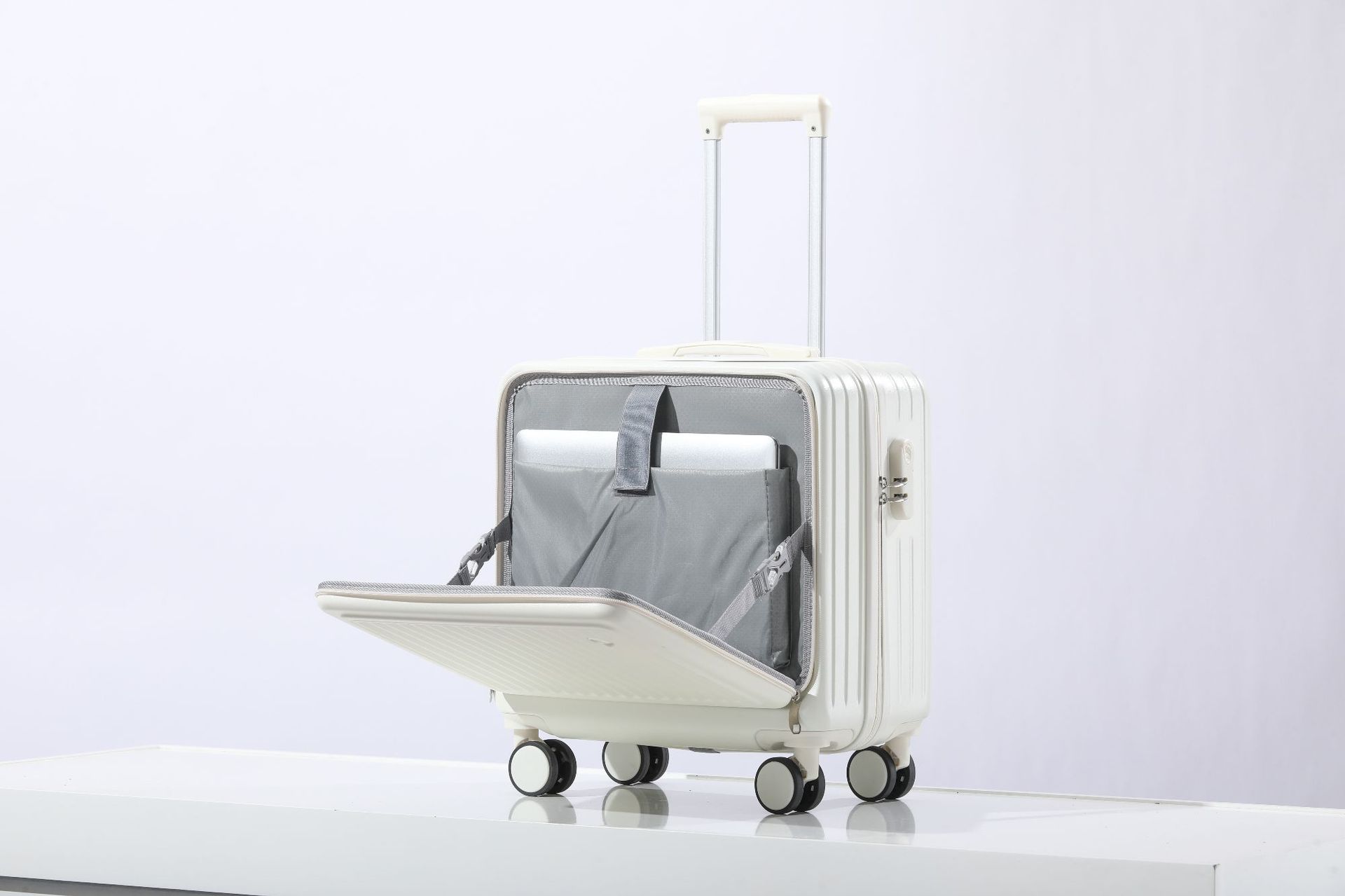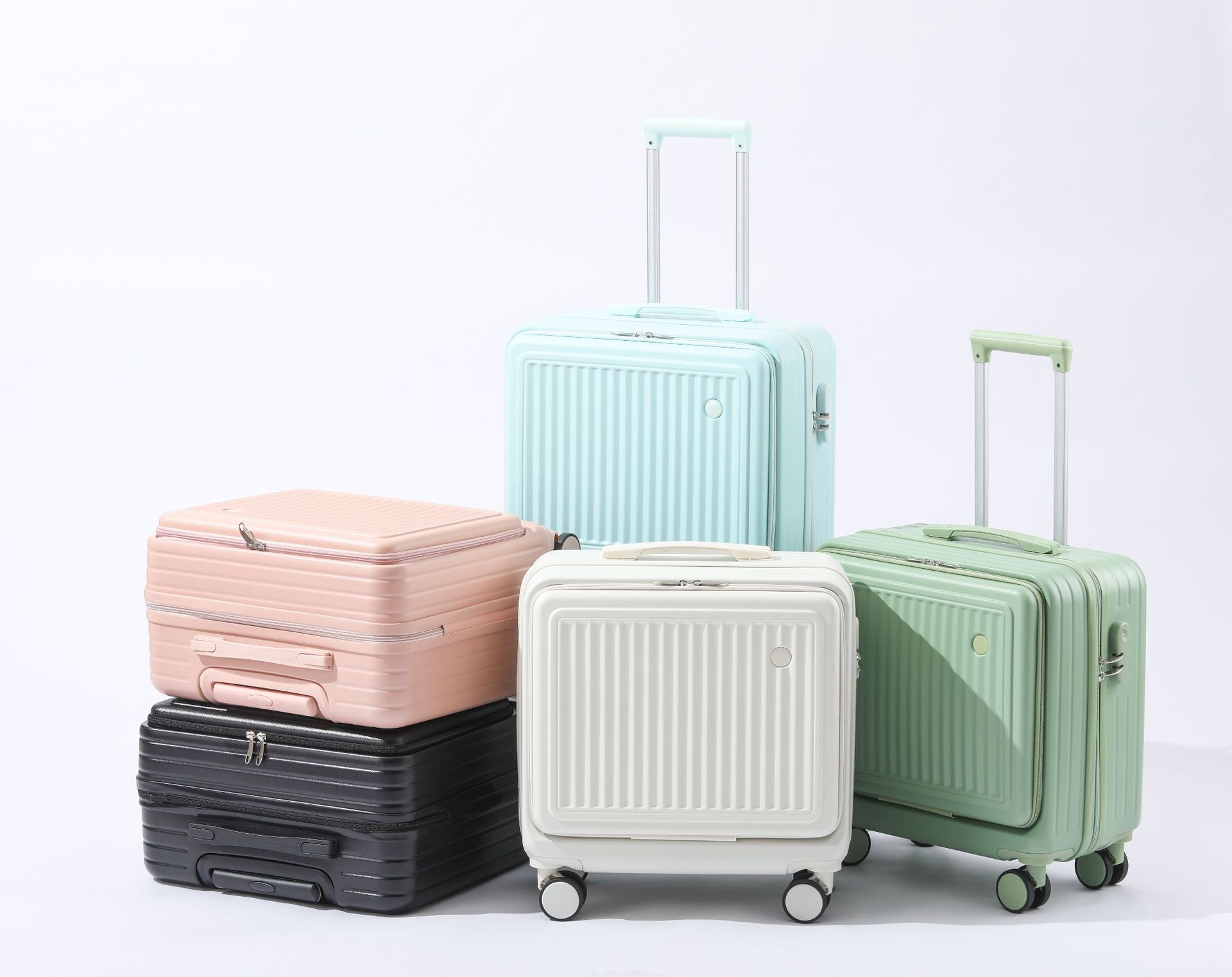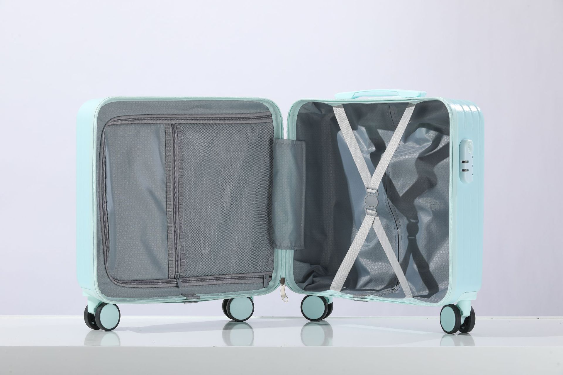 전면 개방 18 인치 다기능 수하물 트롤리 케이스 여성 스몰 사이즈 미니 탑승 상자 소형 비밀번호 가방