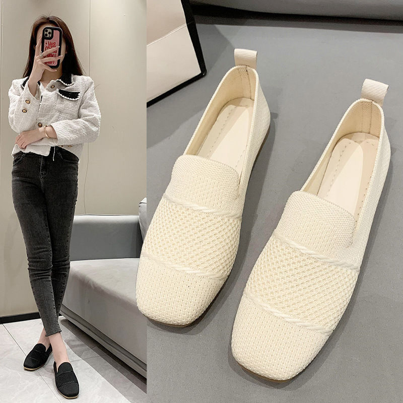 2025 새로운 여름 통기성 플라잉 위버 신발 캐주얼 신발 플랫 신발 여성 싱글 신발 작업 신발 게으른 신발 소프트 단독 신발