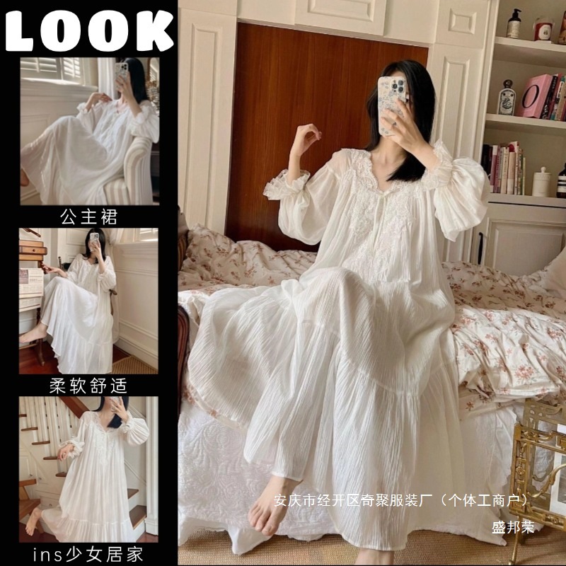 프랑스 공주 스타일 달콤한 레이스 나이트 드레스 여성의 봄과 가을 새로운 Ins 스타일 느슨한 캐주얼 홈 의류 원피스스토어 가기
