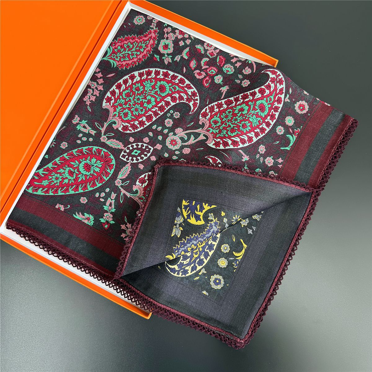 국경 66cm 사각형 스카프 새로운 장갑 빈티지 모조 벨벳 수제 웨이브 후크 가장자리 양면 다른 색상 장식 스카프스토어 가기