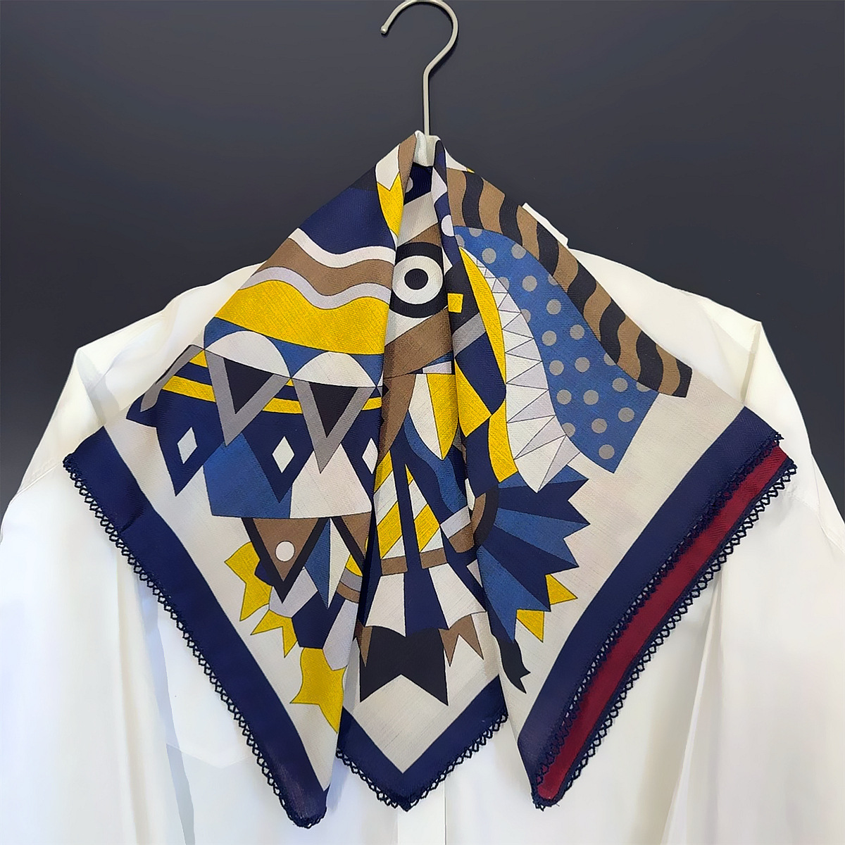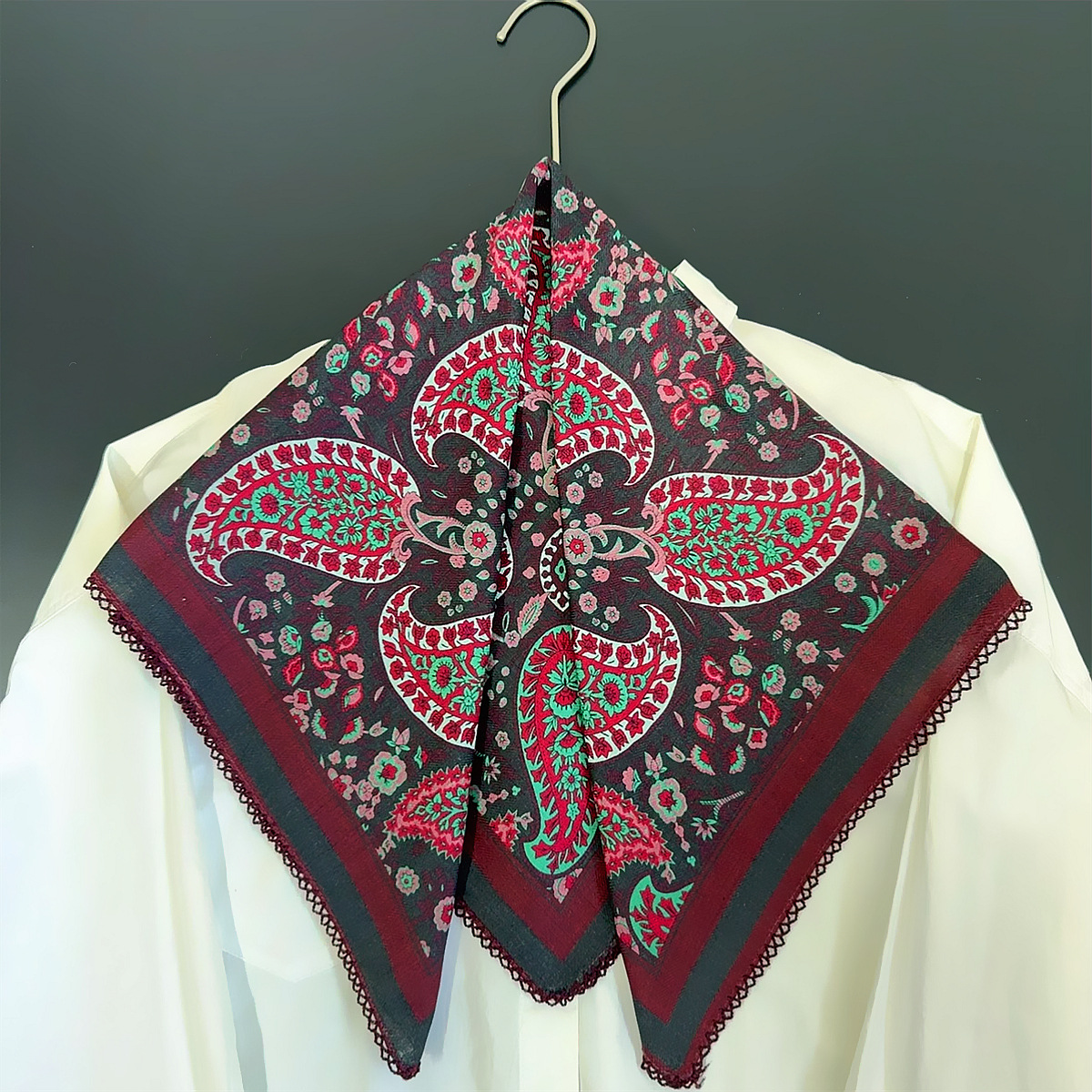 국경 66cm 사각형 스카프 새로운 장갑 빈티지 모조 벨벳 수제 웨이브 후크 가장자리 양면 다른 색상 장식 스카프