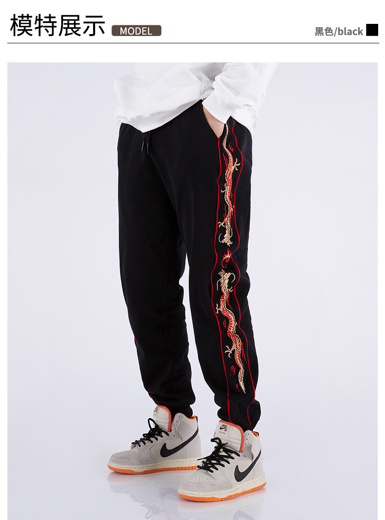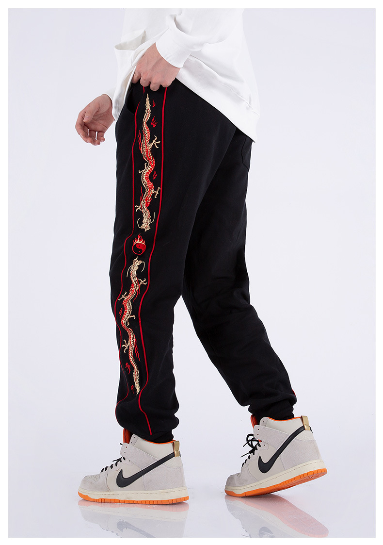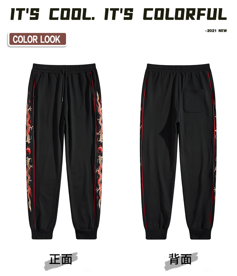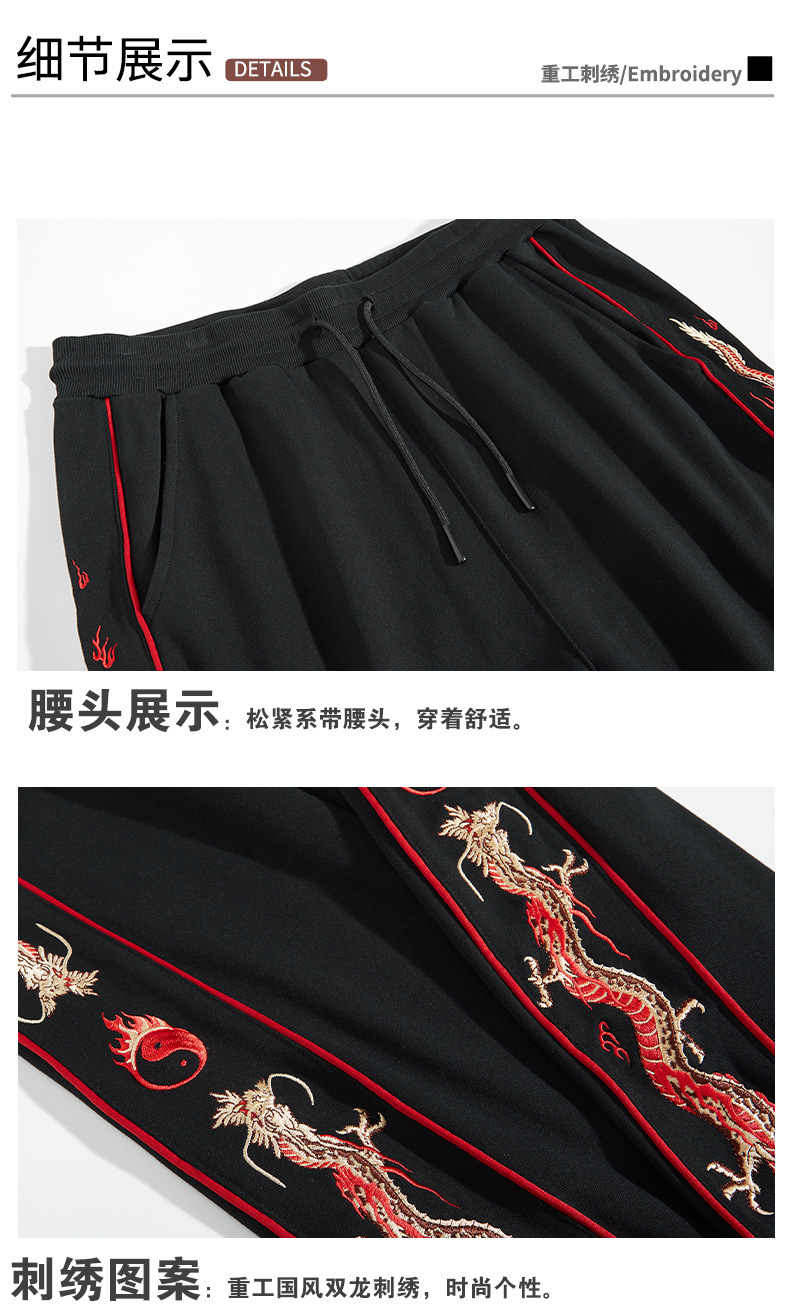 2025 국가 조수 중국 스타일 더블 드래곤 플레이 구슬 드래곤 년 새 자수 캐주얼 바지 다리 발가락 스위트 바지 남성용 바지스토어 가기