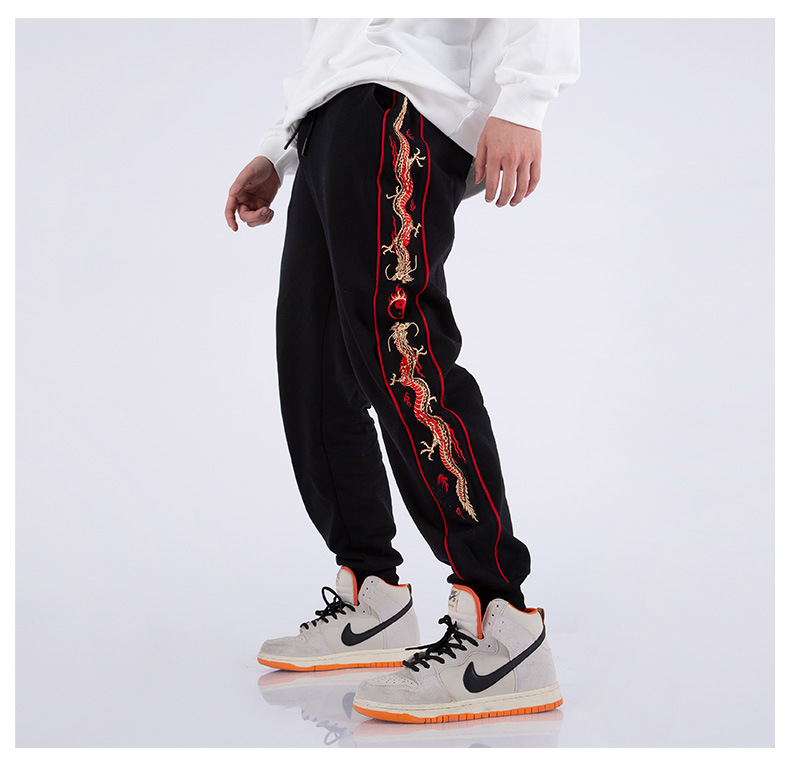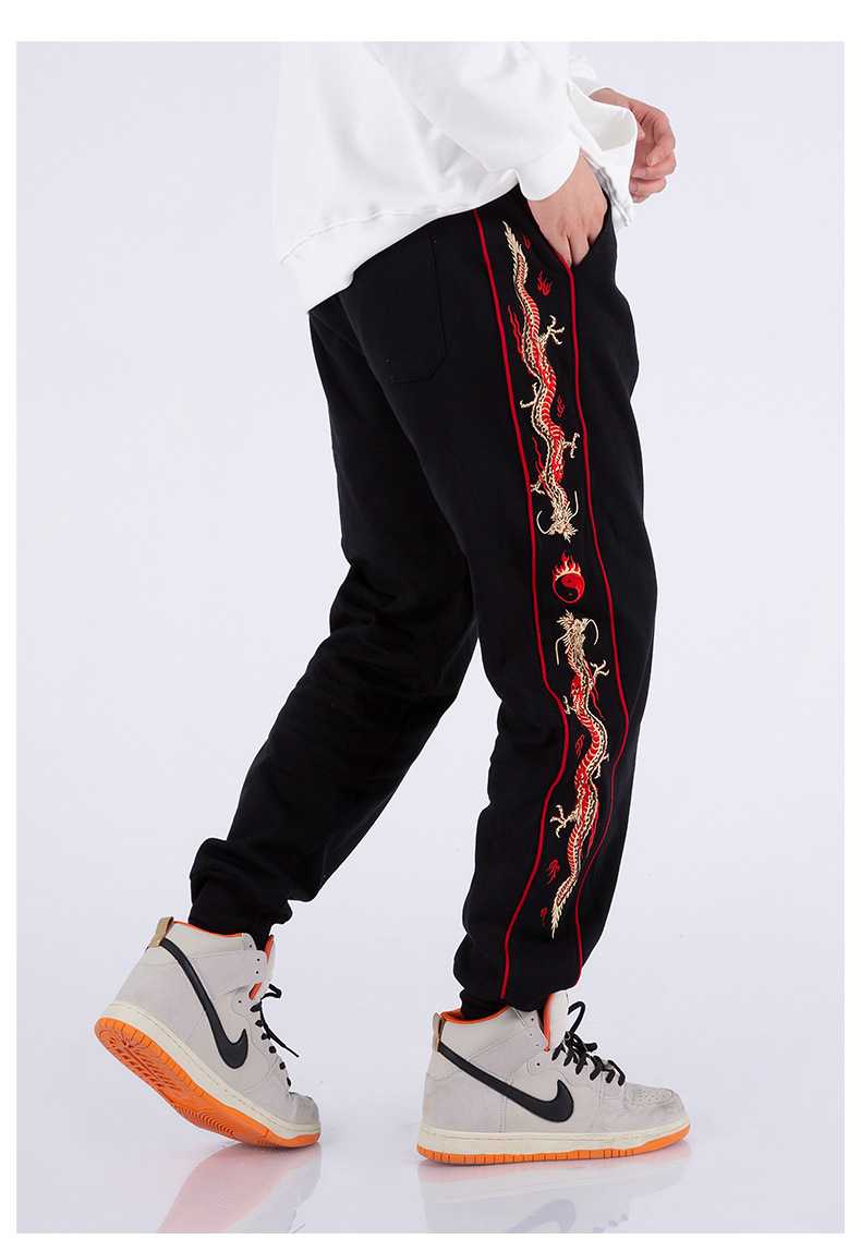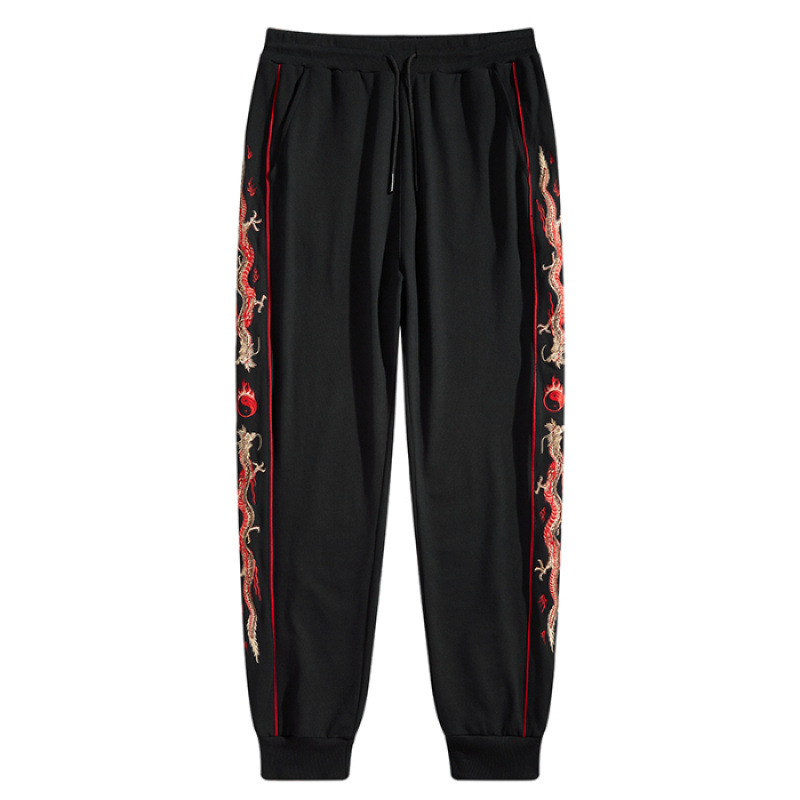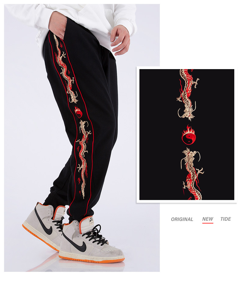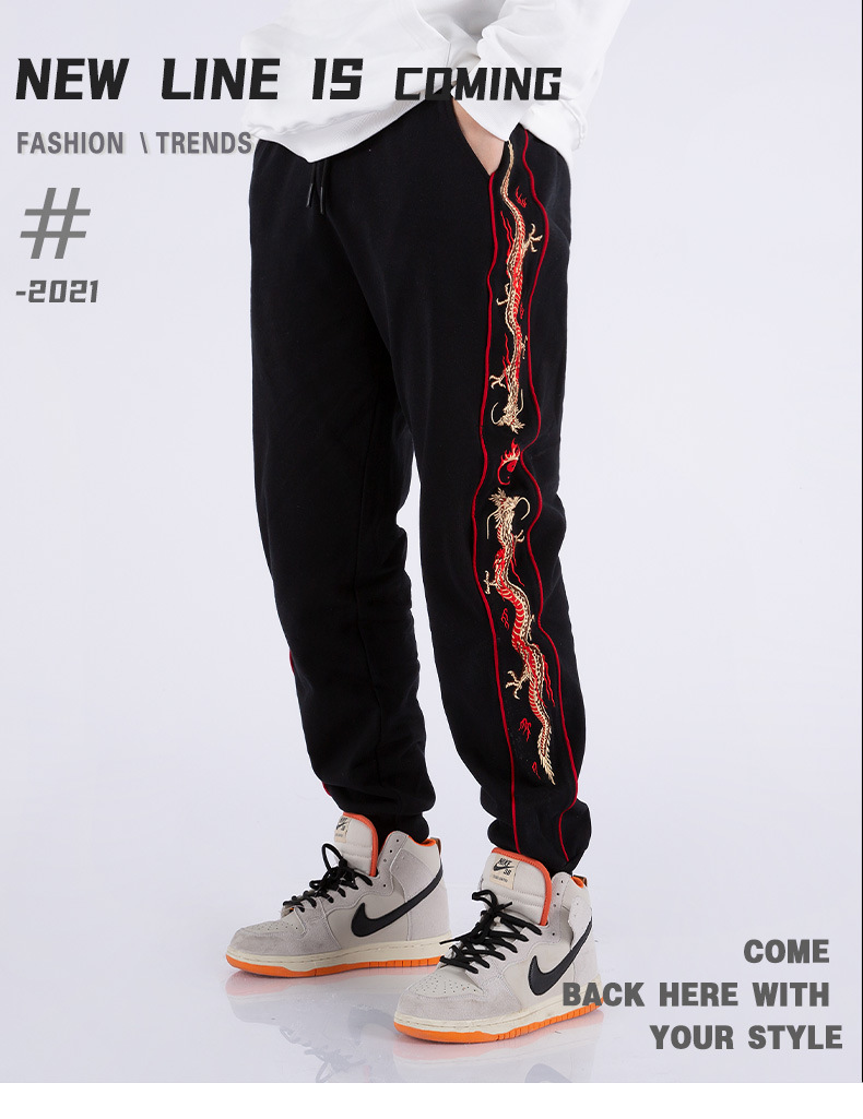 2025 국가 조수 중국 스타일 더블 드래곤 플레이 구슬 드래곤 년 새 자수 캐주얼 바지 다리 발가락 스위트 바지 남성용 바지스토어 가기