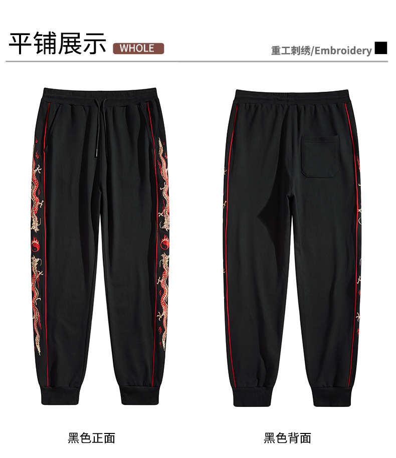 2025 국가 조수 중국 스타일 더블 드래곤 플레이 구슬 드래곤 년 새 자수 캐주얼 바지 다리 발가락 스위트 바지 남성용 바지