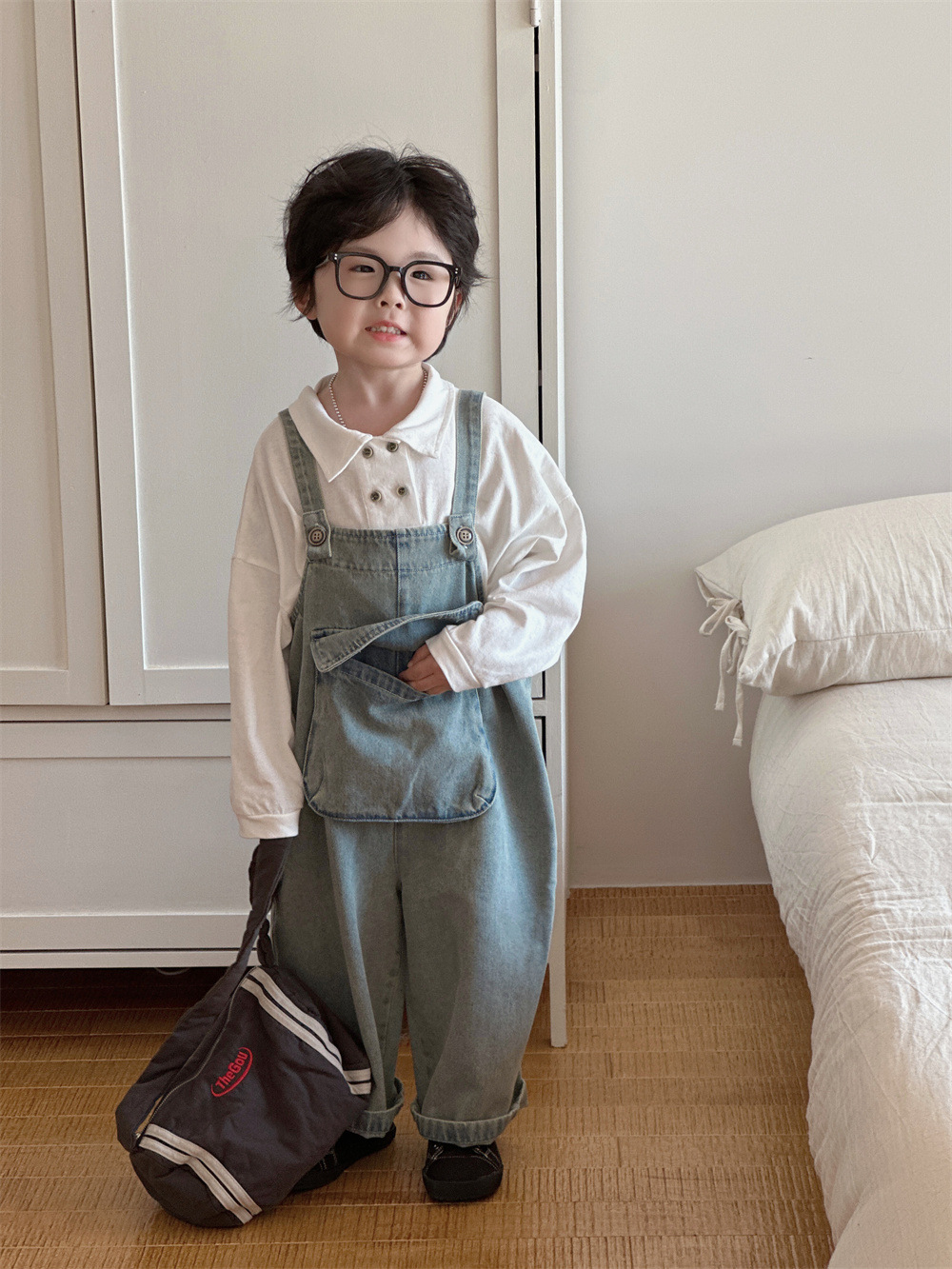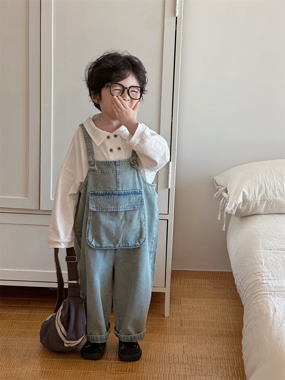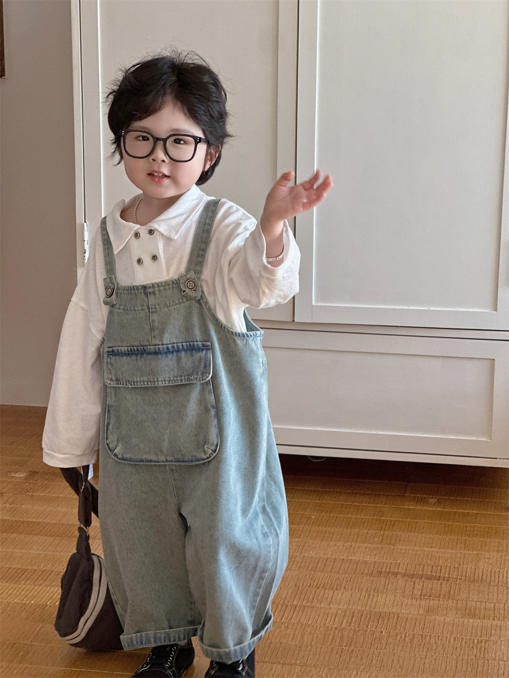 소녀의 귀여운 만화 스트랩 바지 2025 봄과 가을 새로운 소녀의 세련된 올 매치 청바지 아기의 패션 바지스토어 가기