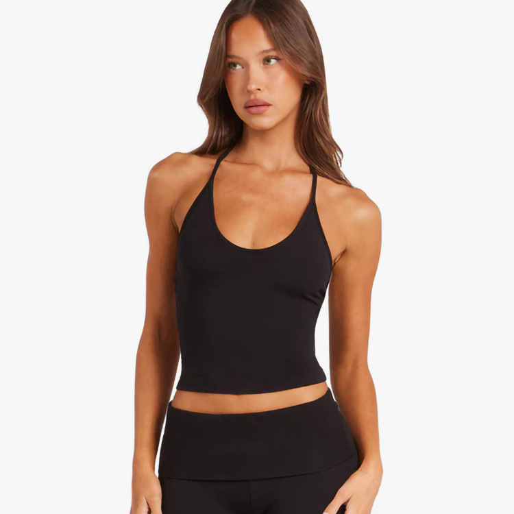 2025 봄과 여름 새로운 요가 의류 유럽과 미국의 국경 타이트 스포츠 조끼 목에 매달린 섹시한 여성 피트니스 의류 가슴 패드