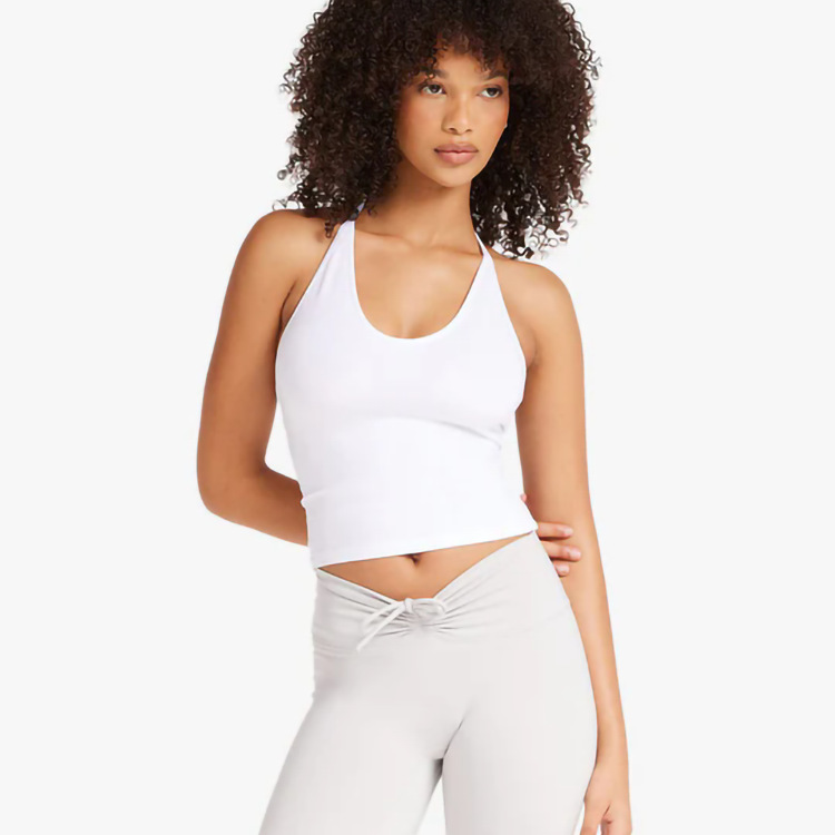 2025 봄과 여름 새로운 요가 의류 유럽과 미국의 국경 타이트 스포츠 조끼 목에 매달린 섹시한 여성 피트니스 의류 가슴 패드스토어 가기