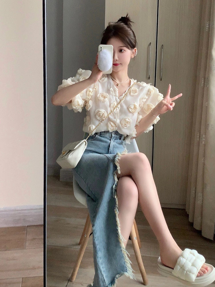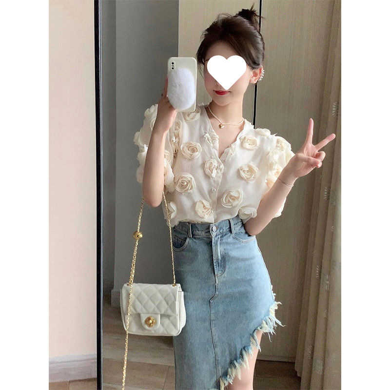 여름 프랑스 여신 팬 세트 여성 2025 새로운 디자인 센스 탑 불규칙한 틈새 스커트 투피스 세트스토어 가기