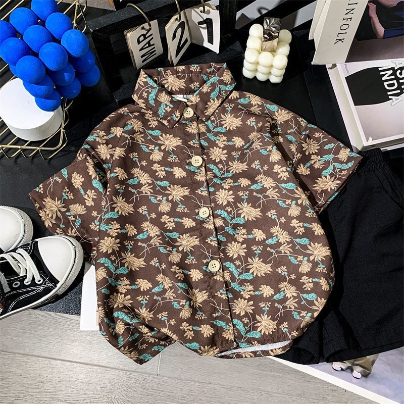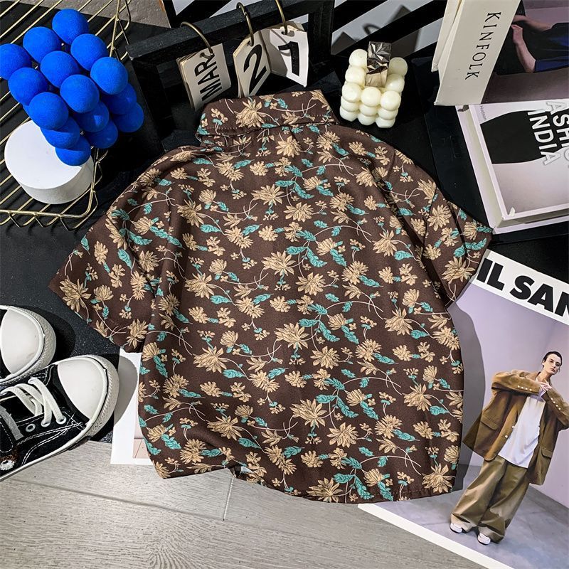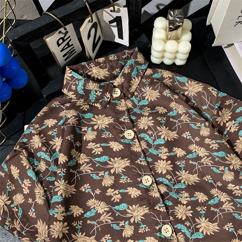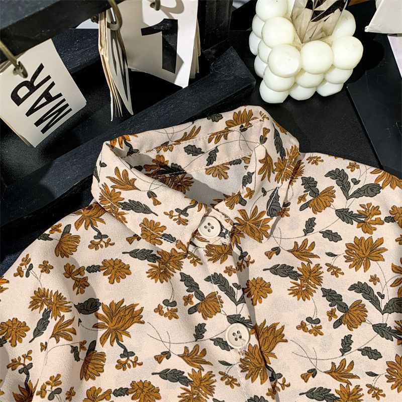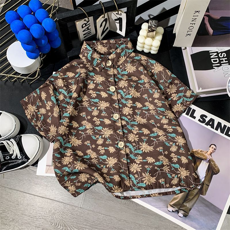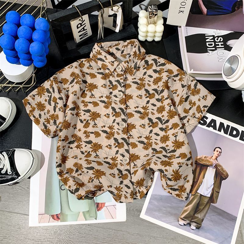 어린이 여름 쉬폰 라르 포인팅 칼라 꽃 반팔 셔츠 소년 소녀 아기 모리 레트로 얇은 카디건 탑