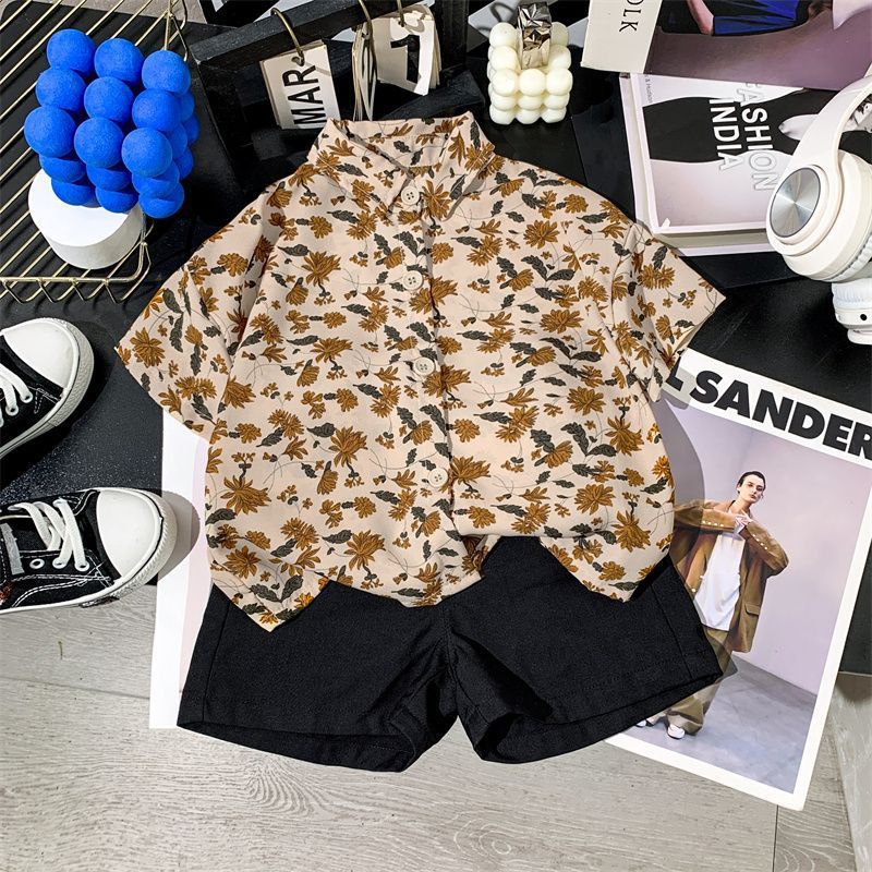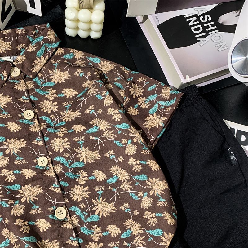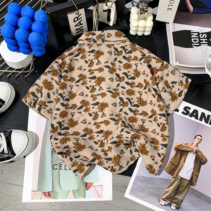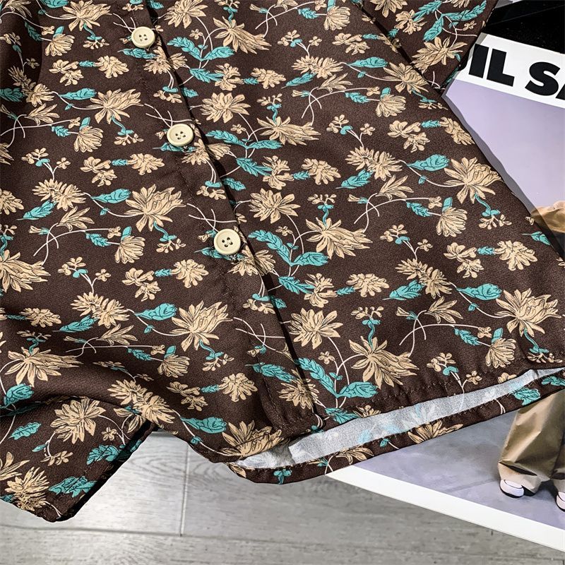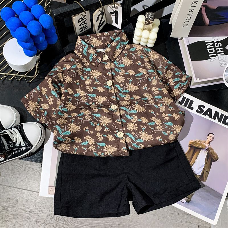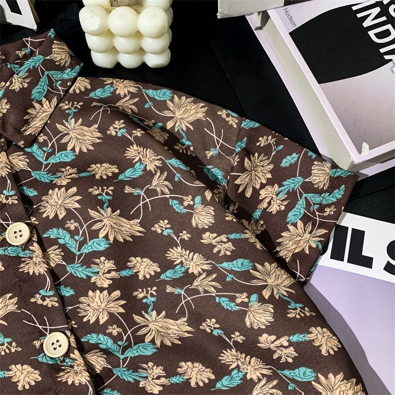 어린이 여름 쉬폰 라르 포인팅 칼라 꽃 반팔 셔츠 소년 소녀 아기 모리 레트로 얇은 카디건 탑