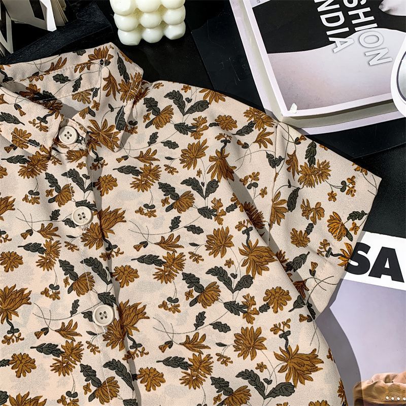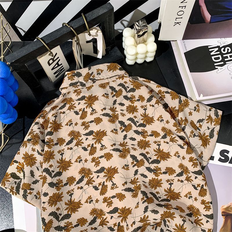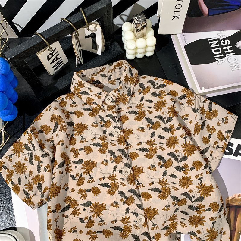 어린이 여름 쉬폰 라르 포인팅 칼라 꽃 반팔 셔츠 소년 소녀 아기 모리 레트로 얇은 카디건 탑스토어 가기
