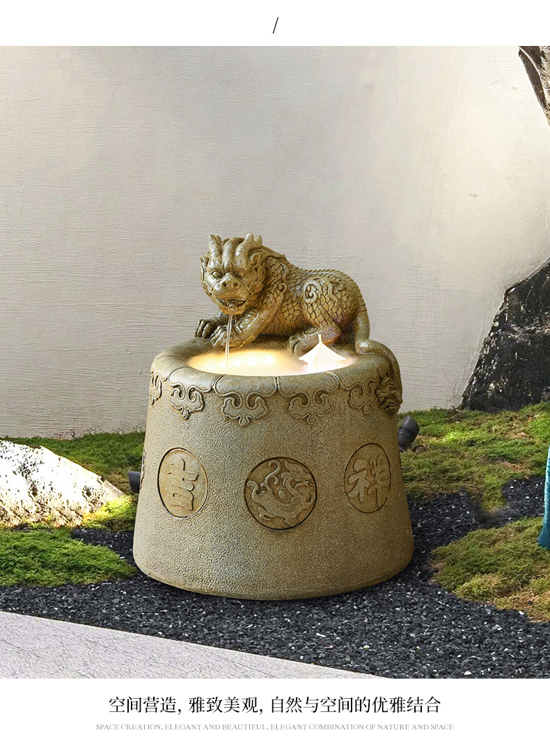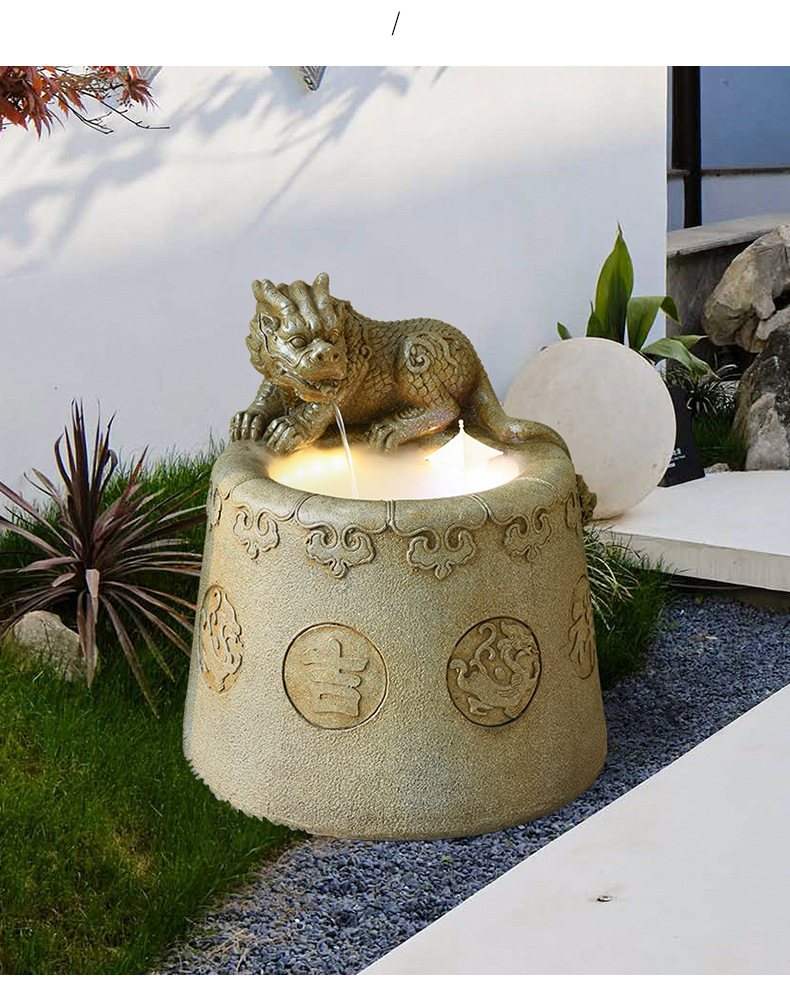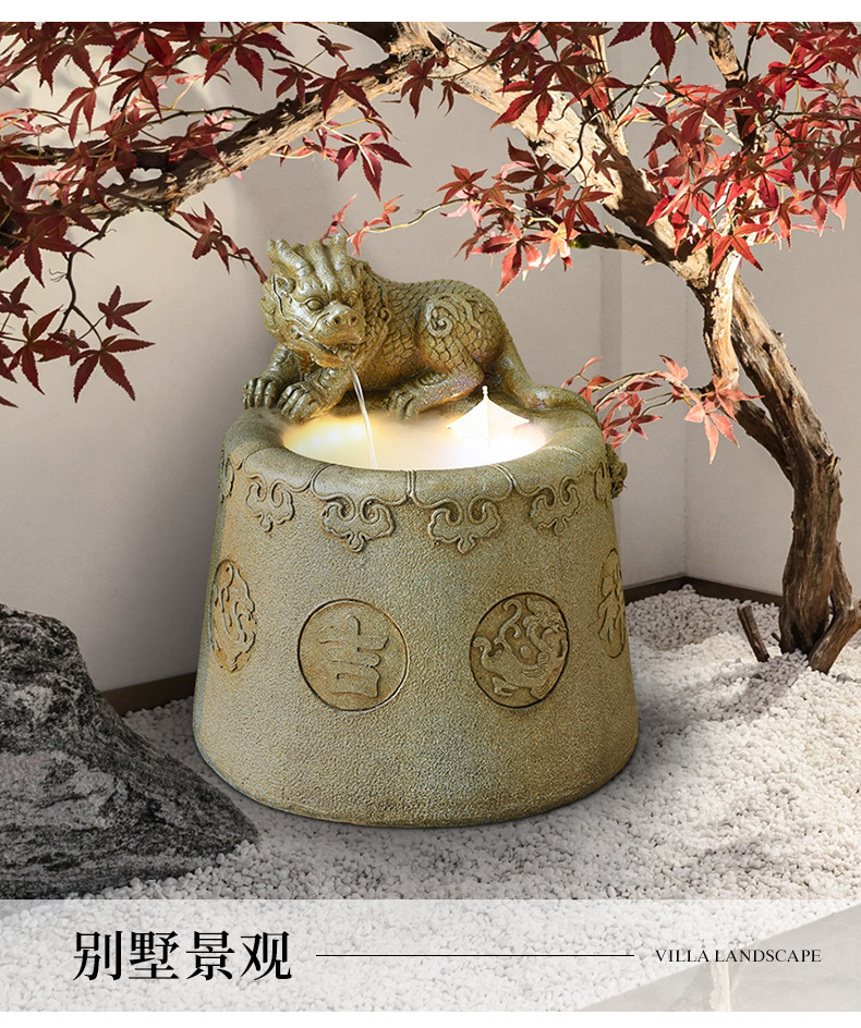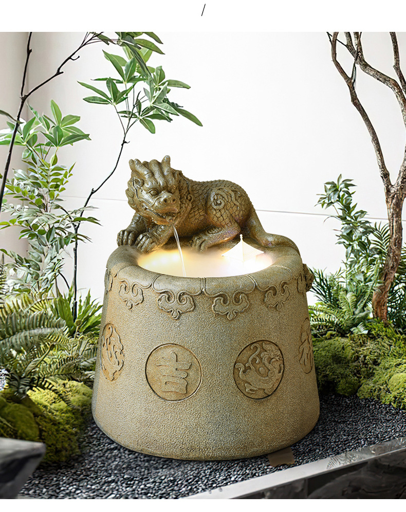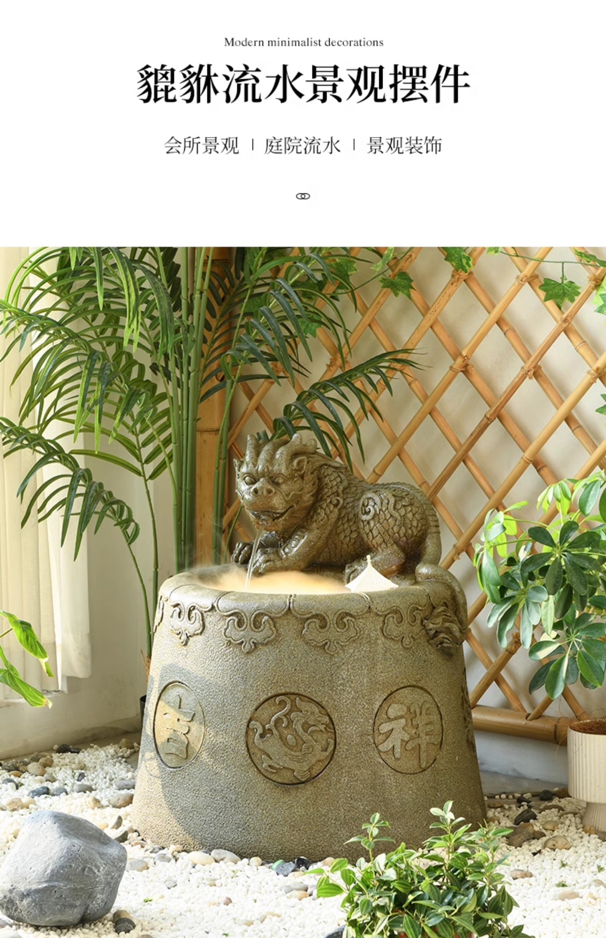 Pi Xiu 행운의 보물 분지 물고기 탱크 물 장식품 실내 야외 안뜰 물고기 연못 분수 조경 순환 물 풍경
