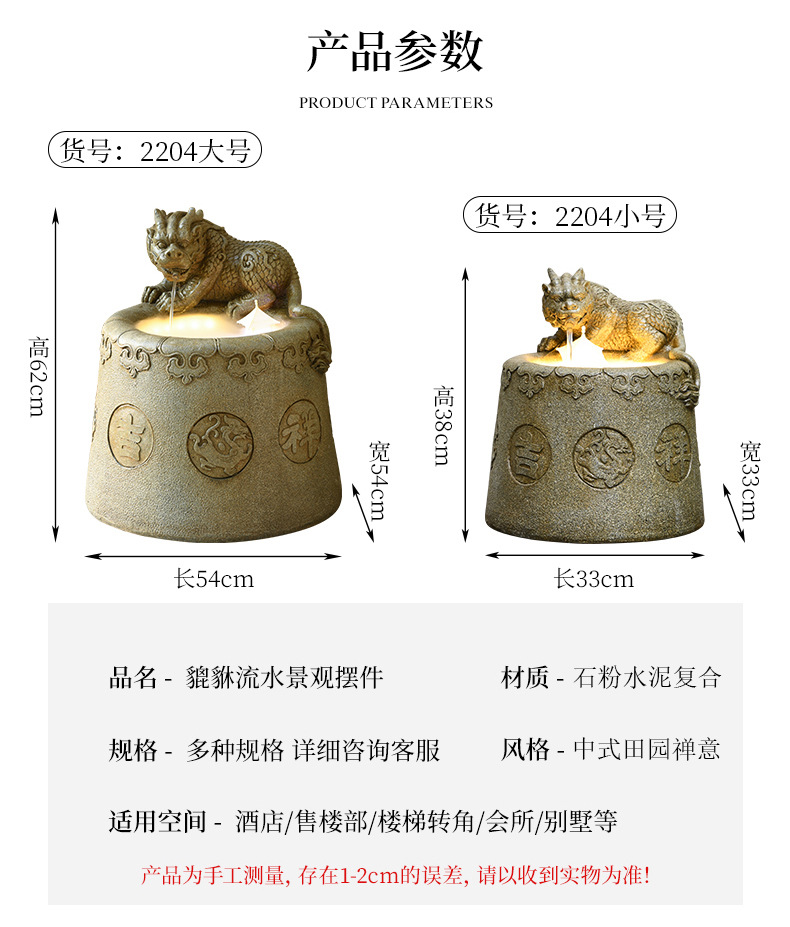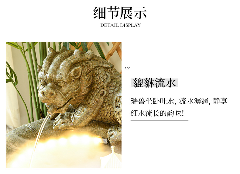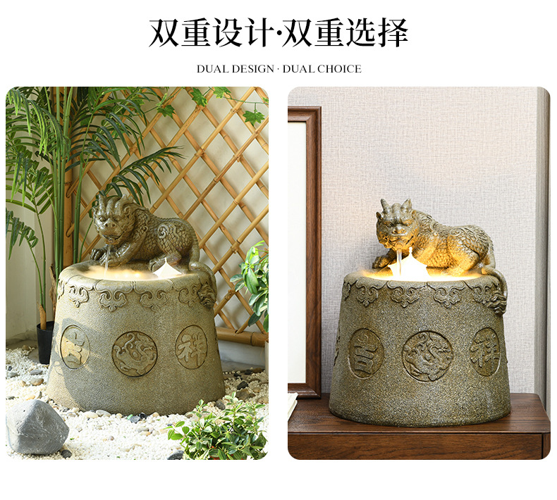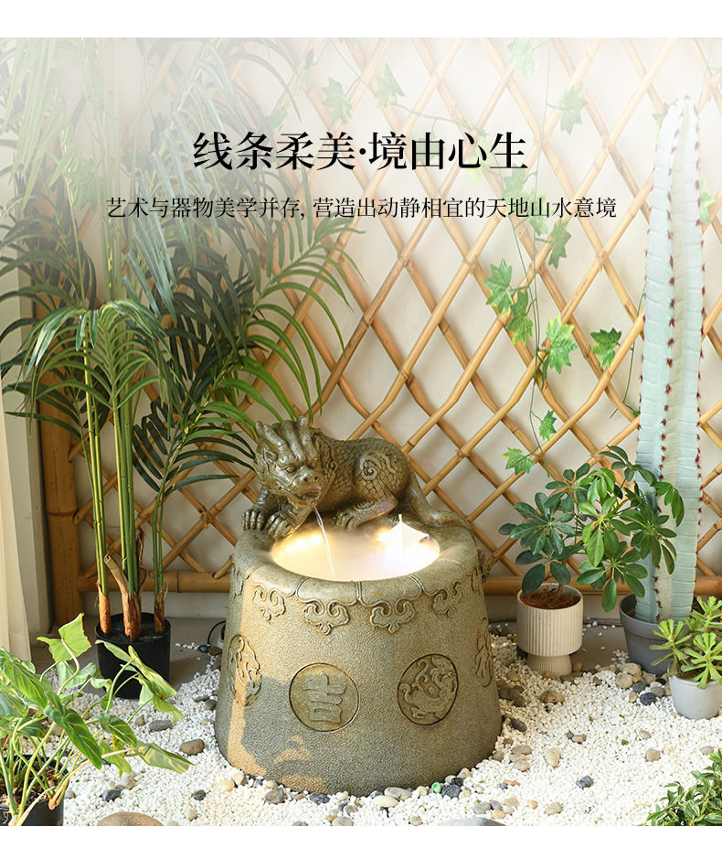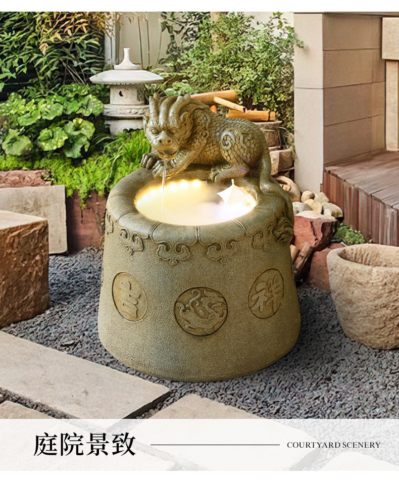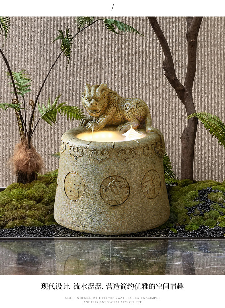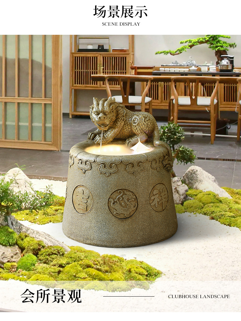 Pi Xiu 행운의 보물 분지 물고기 탱크 물 장식품 실내 야외 안뜰 물고기 연못 분수 조경 순환 물 풍경