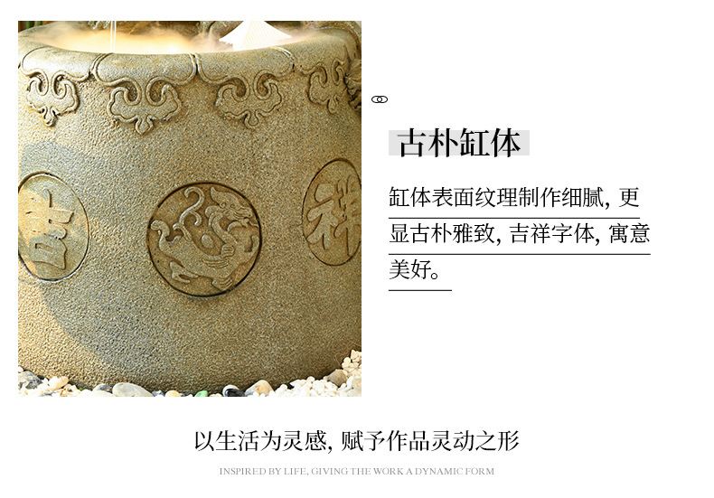 Pi Xiu 행운의 보물 분지 물고기 탱크 물 장식품 실내 야외 안뜰 물고기 연못 분수 조경 순환 물 풍경스토어 가기