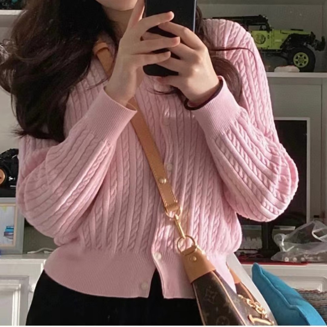 24 사이즈 스윕 Marlaff 여성용 소형 트위스트 니트 카디건 슬림 핏 클래식 폴로 솔리드 컬러 라운드 넥 외부스토어 가기