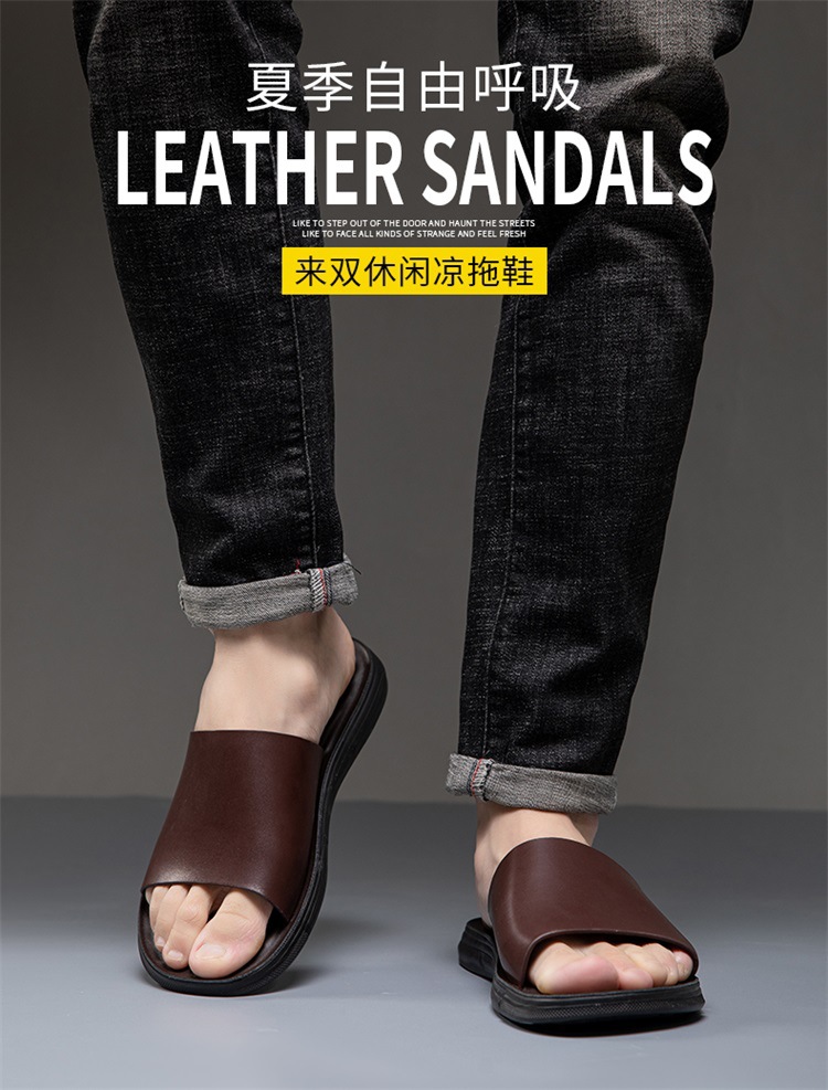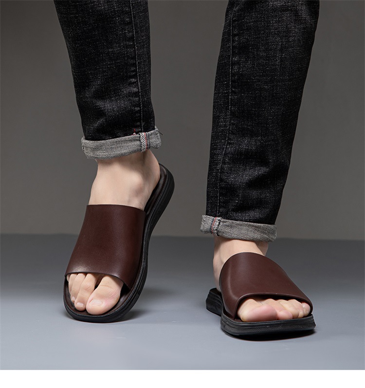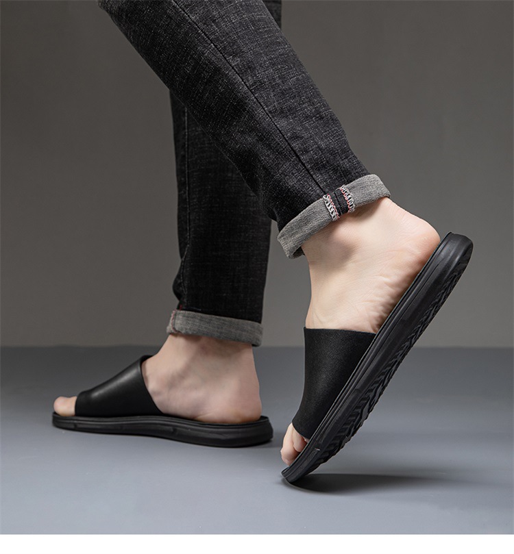 부드러운 가죽 슬리퍼 남성용 신발 2025 년 봄과 여름 새로운 남성용 샌들 샌들과 슬리퍼 소 가죽 이중 목적 캐주얼 비치 슈즈 미끄럼 방지스토어 가기