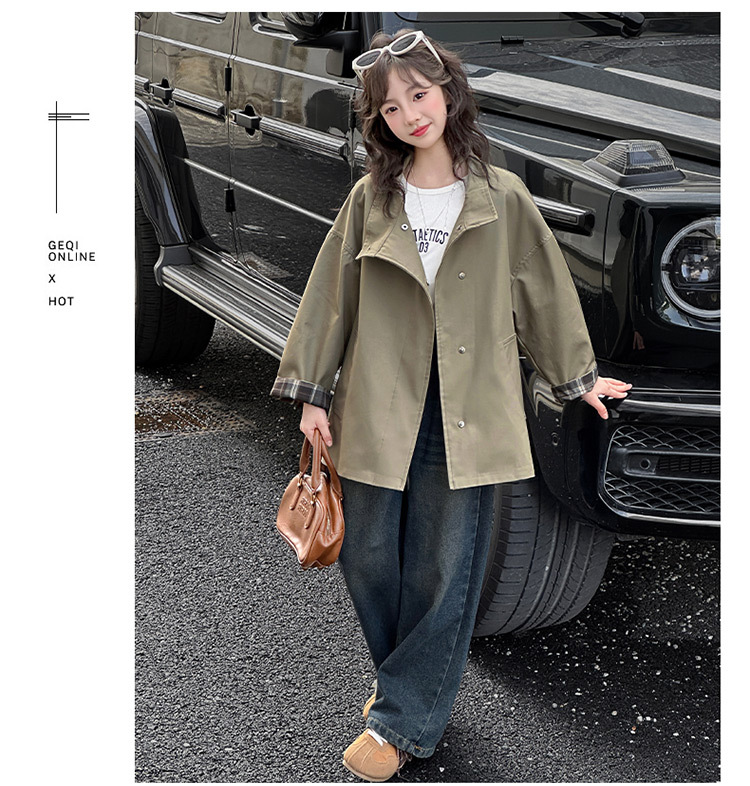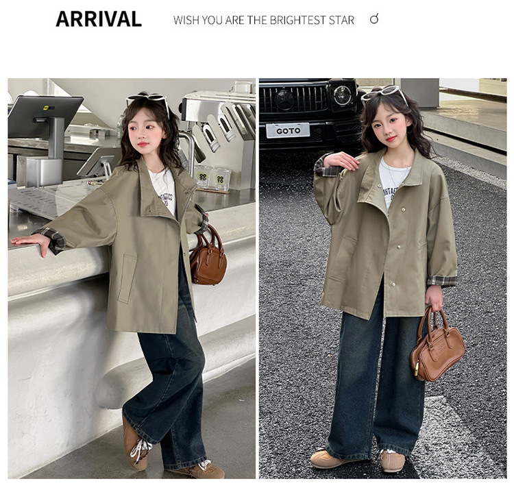 소녀 윈드 브레이커 코트 봄 한국 스타일 레트로 스타일 캐주얼 패션 어린이 의류 서양식 소녀 의류 Huzhou Zhili