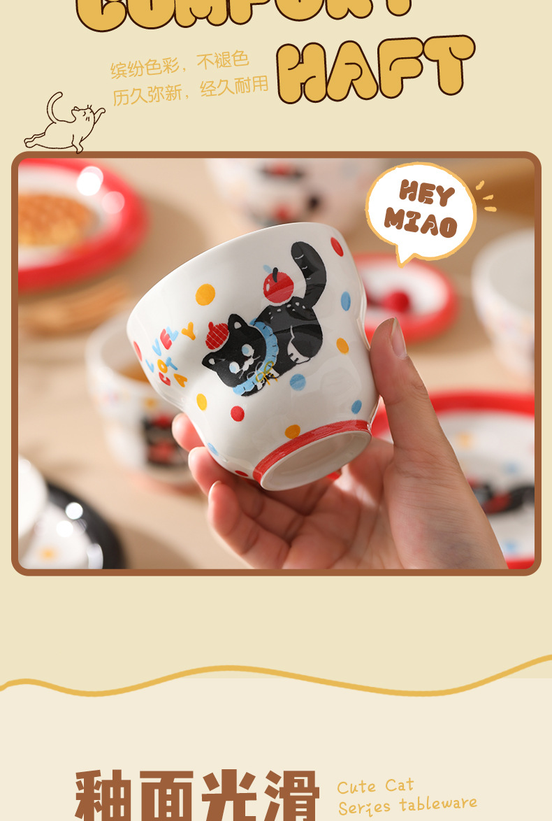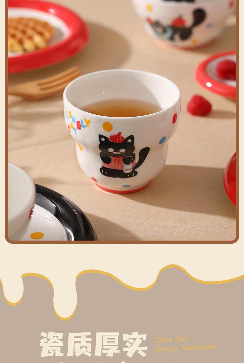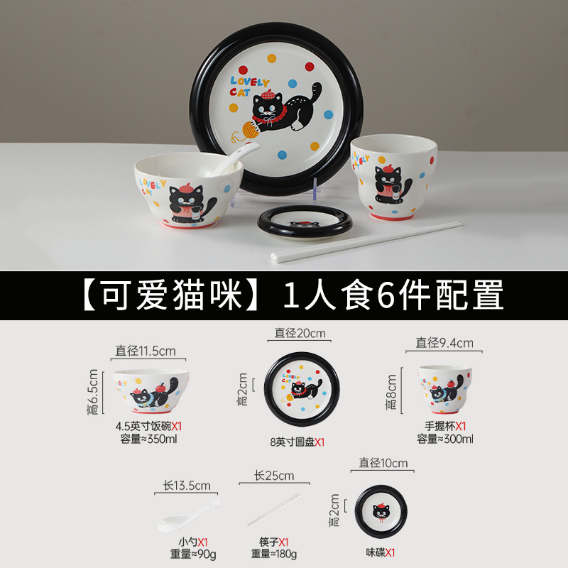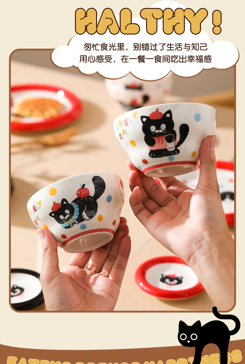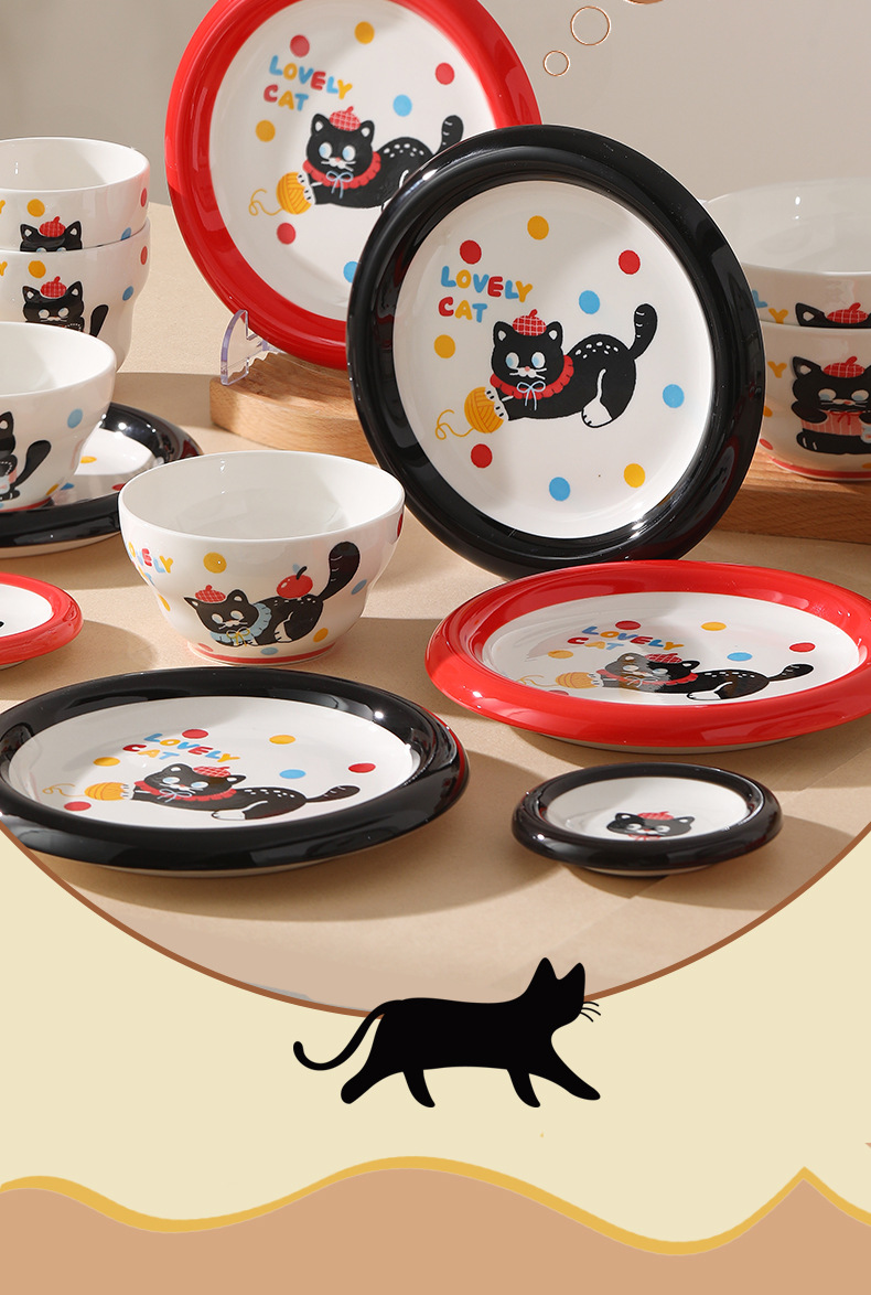 세라믹 그릇 접시 높은 색상 가치 세라믹 식기 선물 상자 사용자 정의 만화 귀여운 고양이 요리 세트 조합스토어 가기
